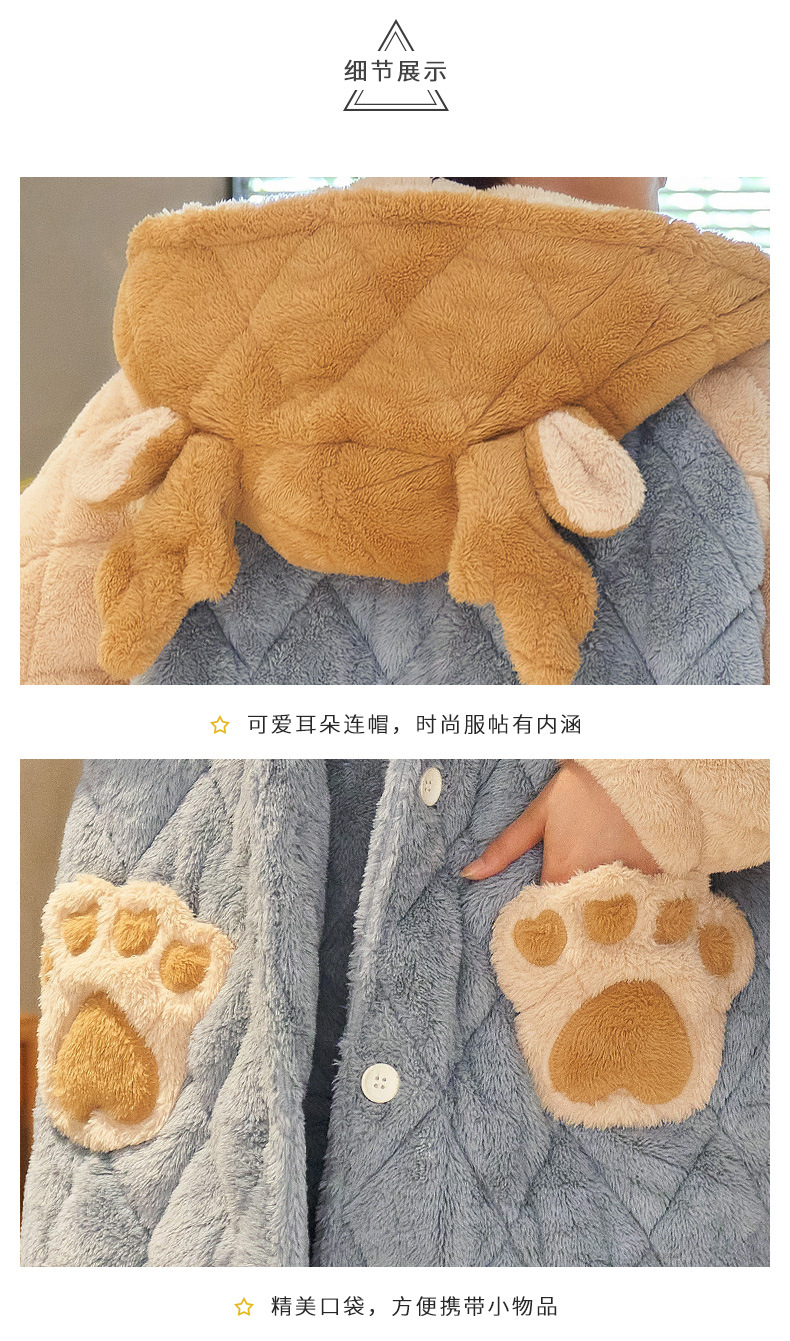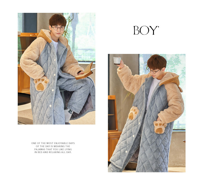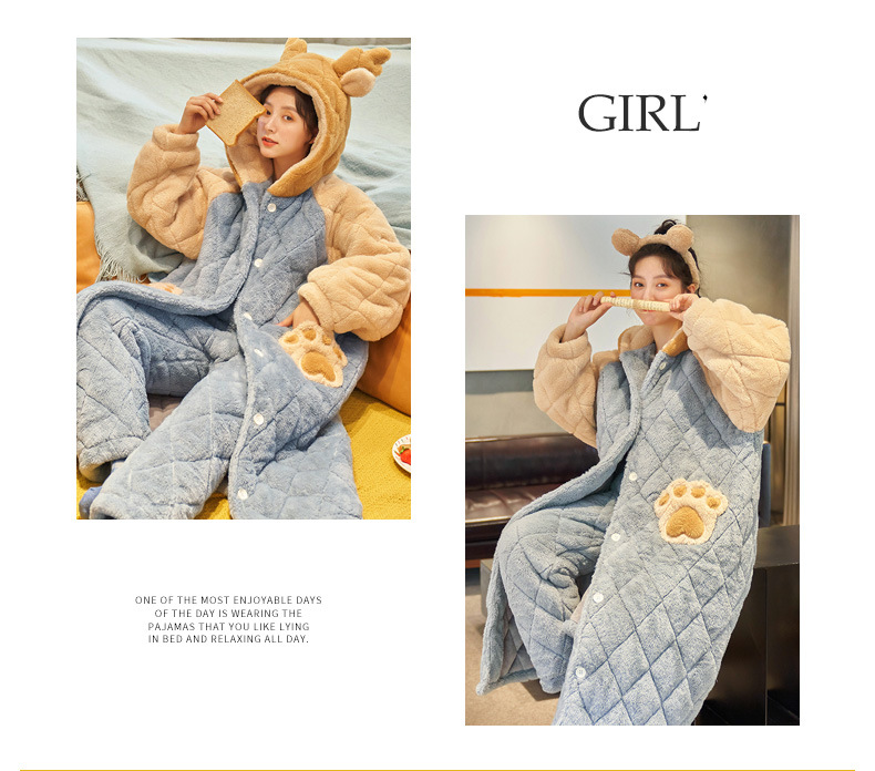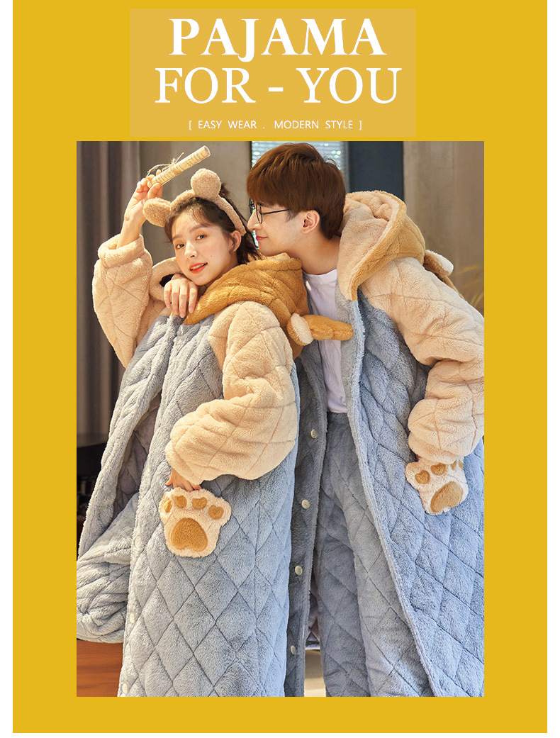 3 층 벨벳 퀼트 두꺼운 잠옷 세트 커플의 겨울 산호 벨벳과 벨벳 잠옷 여성의 겨울 느슨한스토어 가기
