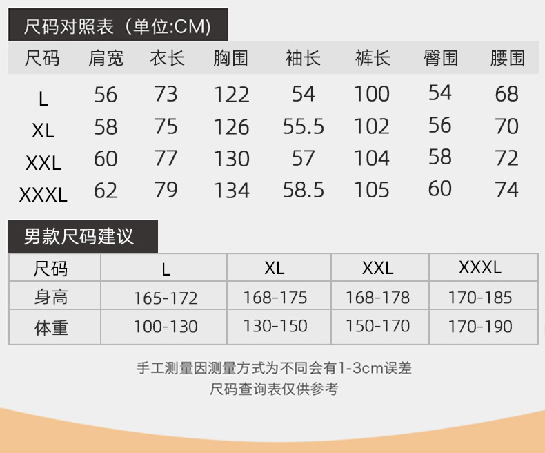 尺码表仅参考,不做衣服的最终尺寸,要为实物为准