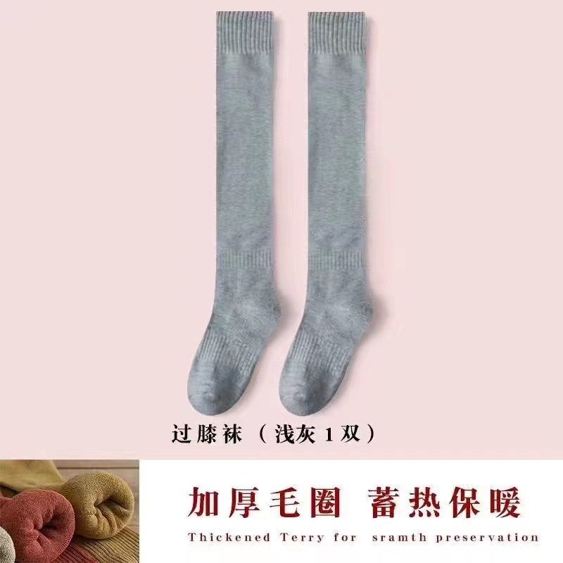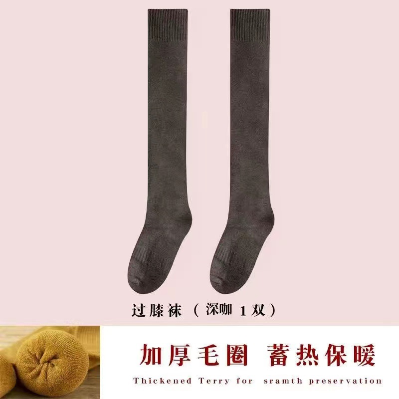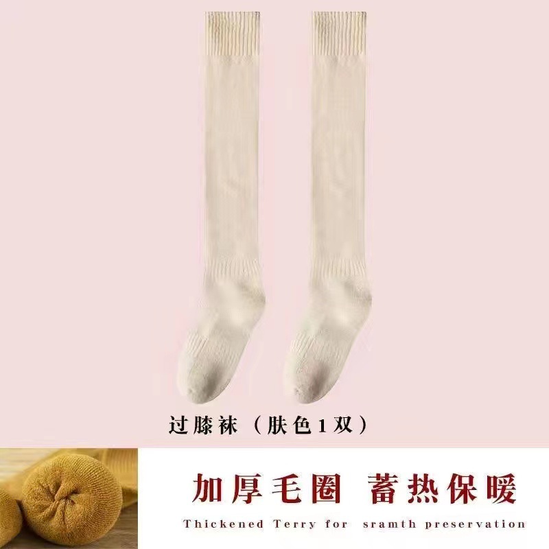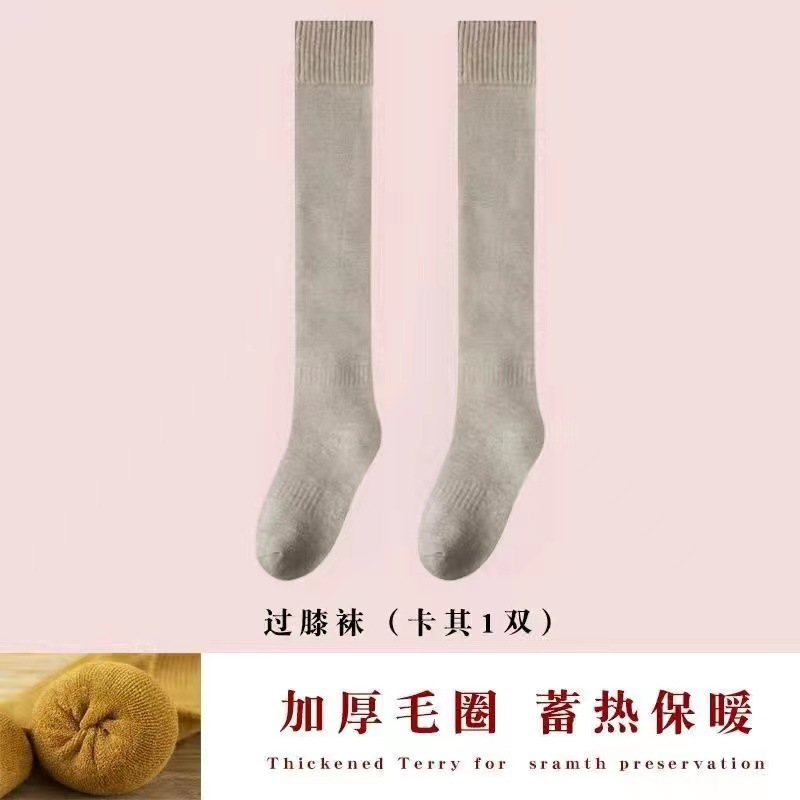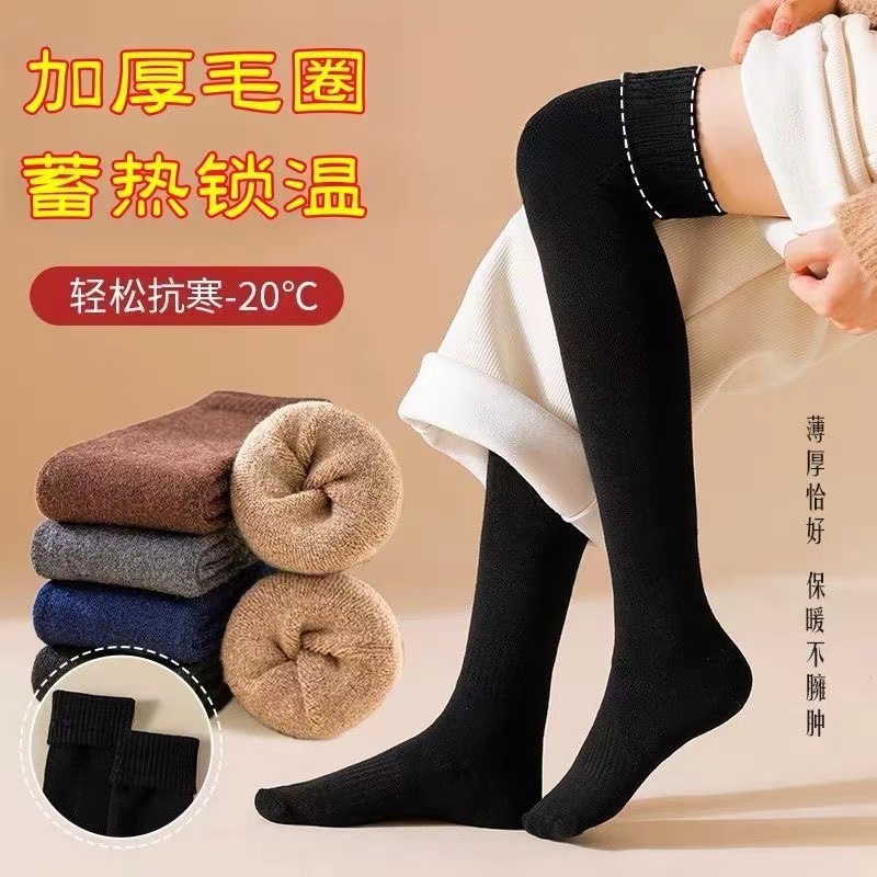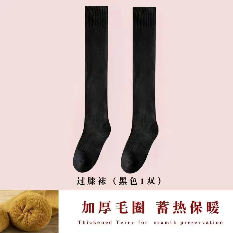 검은 스타킹 여성의 가을과 겨울이 두껍게 기모 겨울 높은 무릎 따뜻한 미끄럼 방지 허벅지 양말