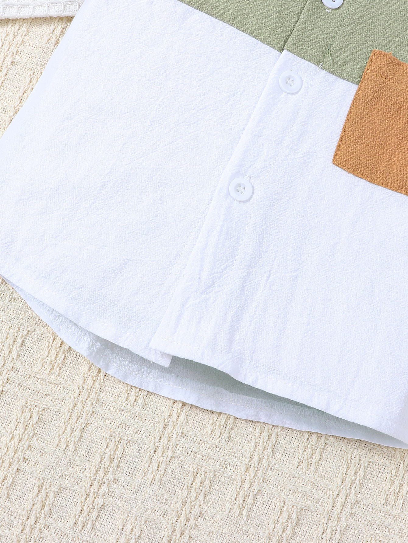 국경 간 소년 여름 면화 및 리넨 캐주얼 짧은 소매 Lel 셔츠 색상 일치 남성 어린이 여름 투피스 세트