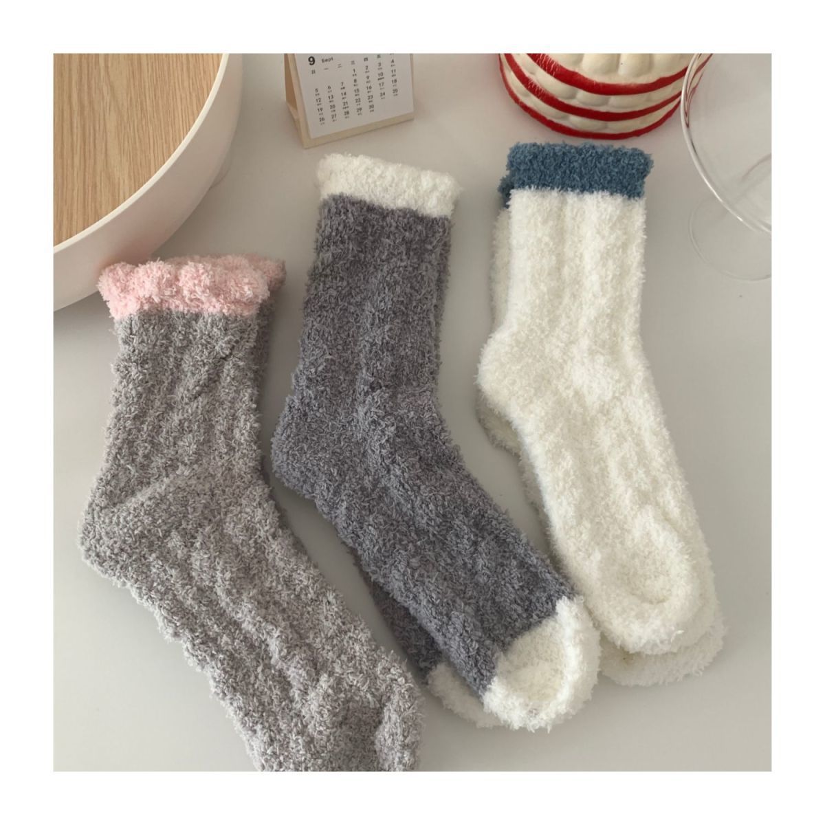 수면 양말 마카롱 산호 양털 여성의 가을과 겨울 두껍게 기모 소녀 겨울 모피 홈 바닥 양말 여성
