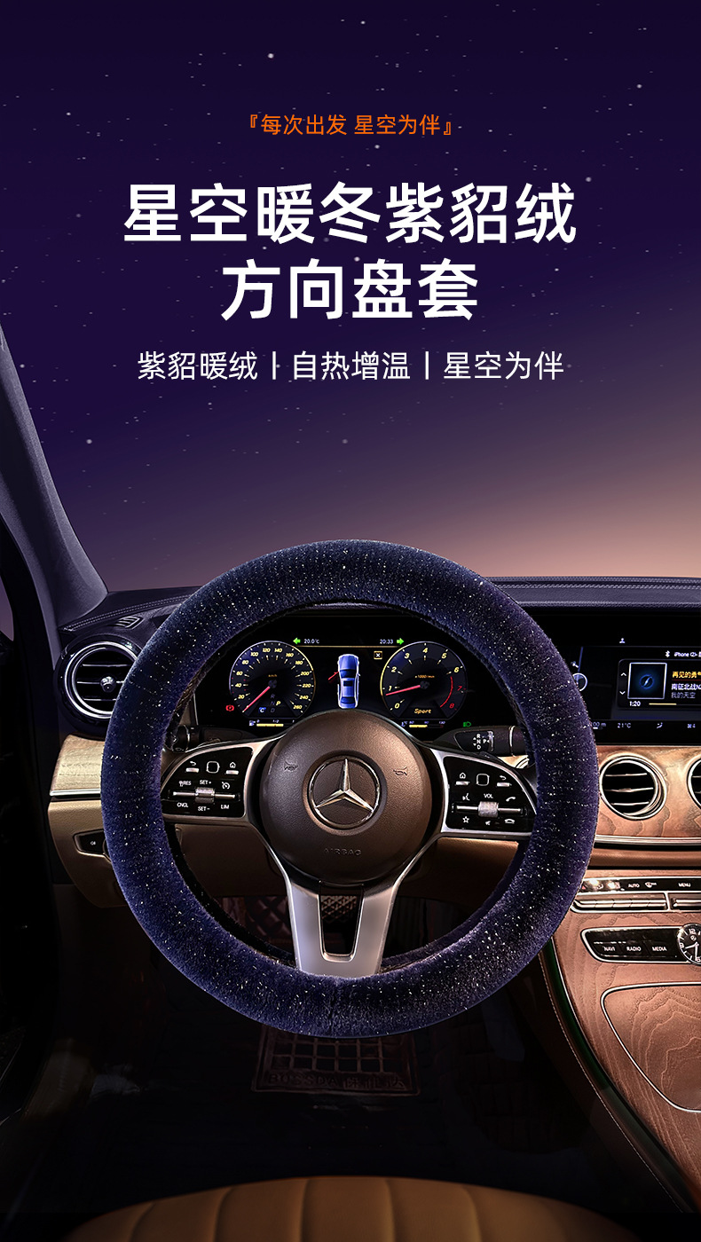 겨울 자동차 스티어링 휠 커버 Starry Sky 모피 밍크 벨벳 사계절 보편적 인 자동차 핸들 커버 자체 가열 스티어링 휠 커버 플러시스토어 가기