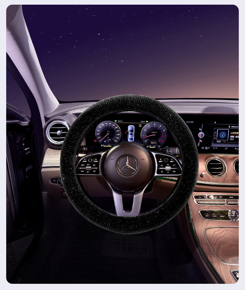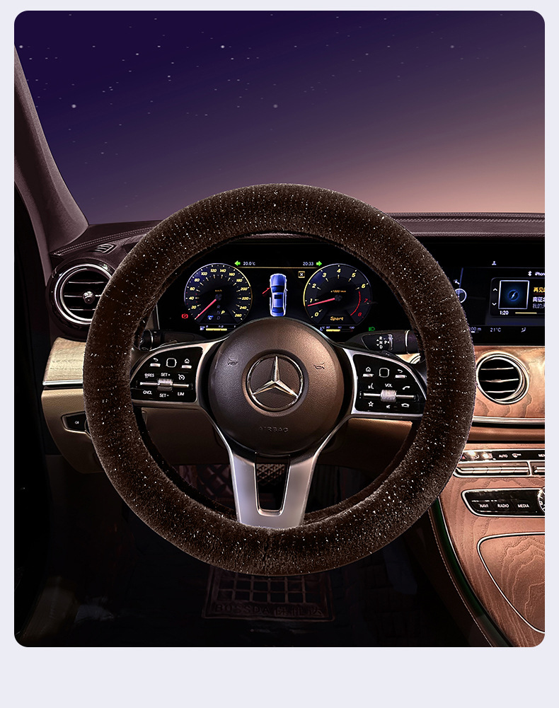 겨울 자동차 스티어링 휠 커버 Starry Sky 모피 밍크 벨벳 사계절 보편적 인 자동차 핸들 커버 자체 가열 스티어링 휠 커버 플러시