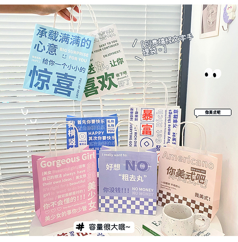 선물 종이 가방, 창의적인 문구가 있는 대형 선물 가방, 고급스러운 생일 선물 가방, 휴대용 가방, 인스타 감성