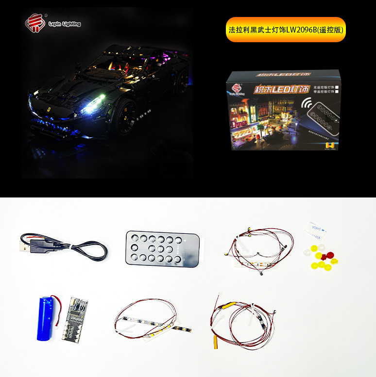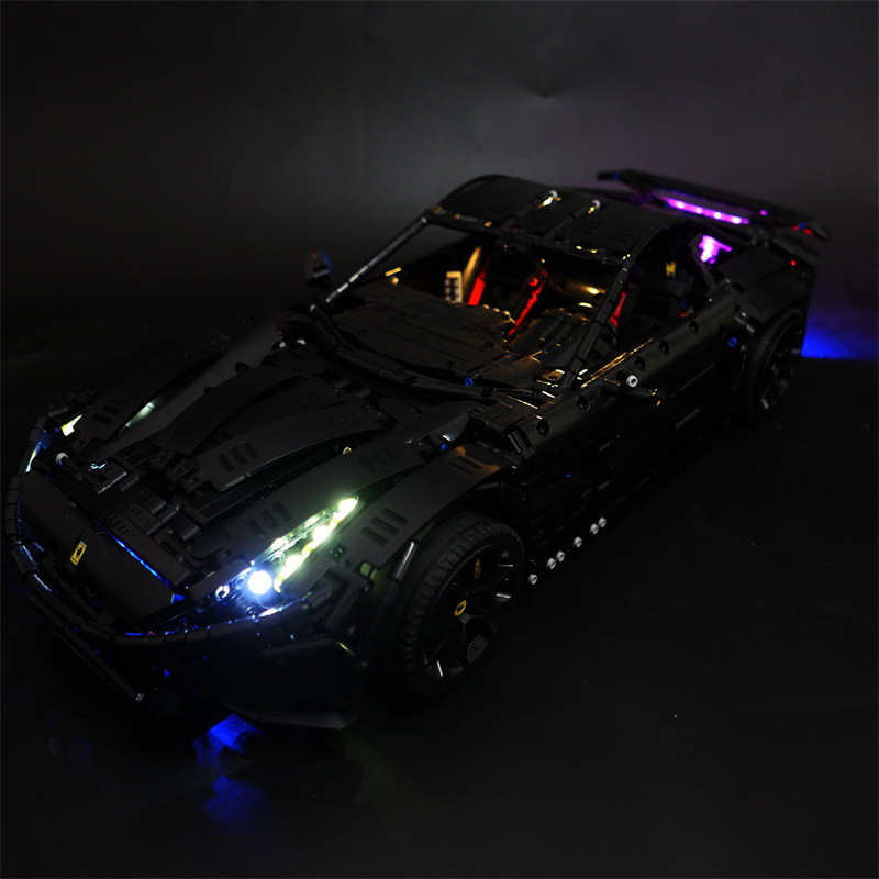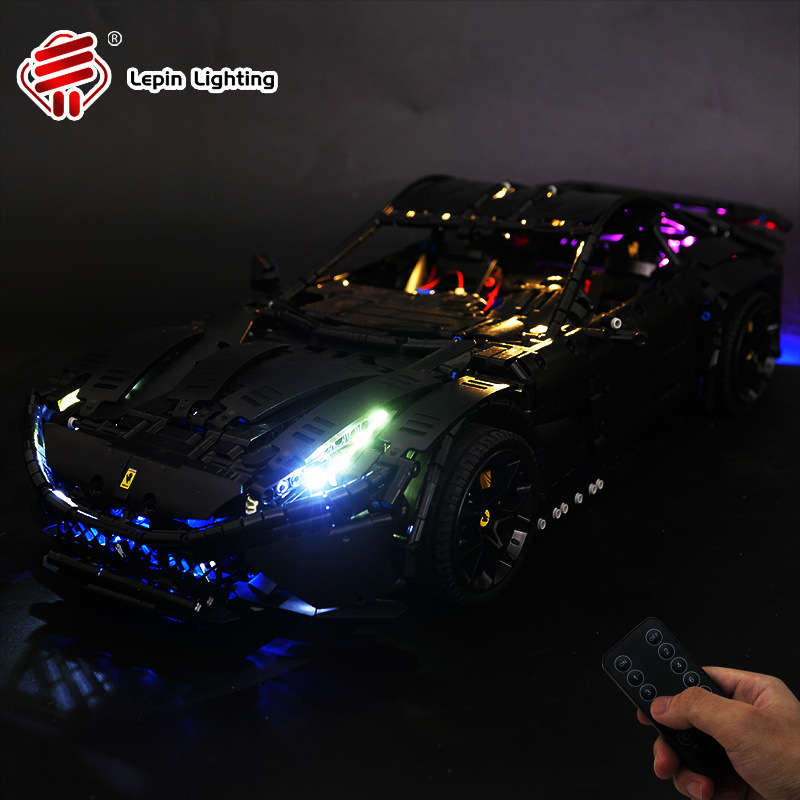 레고 기술 시리즈 페라리 블랙 워리어 F12 스포츠카 LED 원격 제어 조명과 호환되는 DIY 빌딩 블록 조명