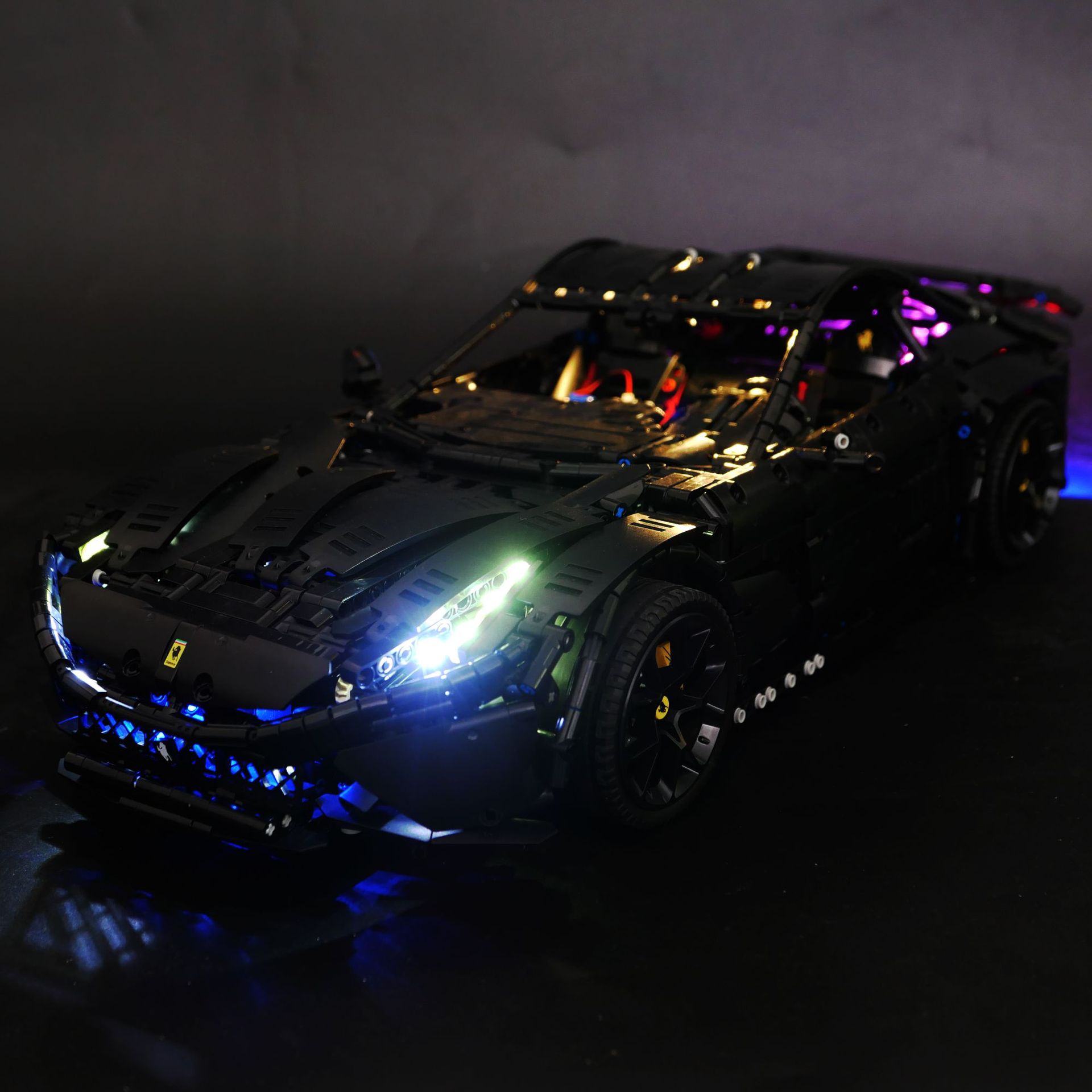 • 빌딩 블록없이 페라리 F12 검은 전사 조명 (원격 제어 버전)
