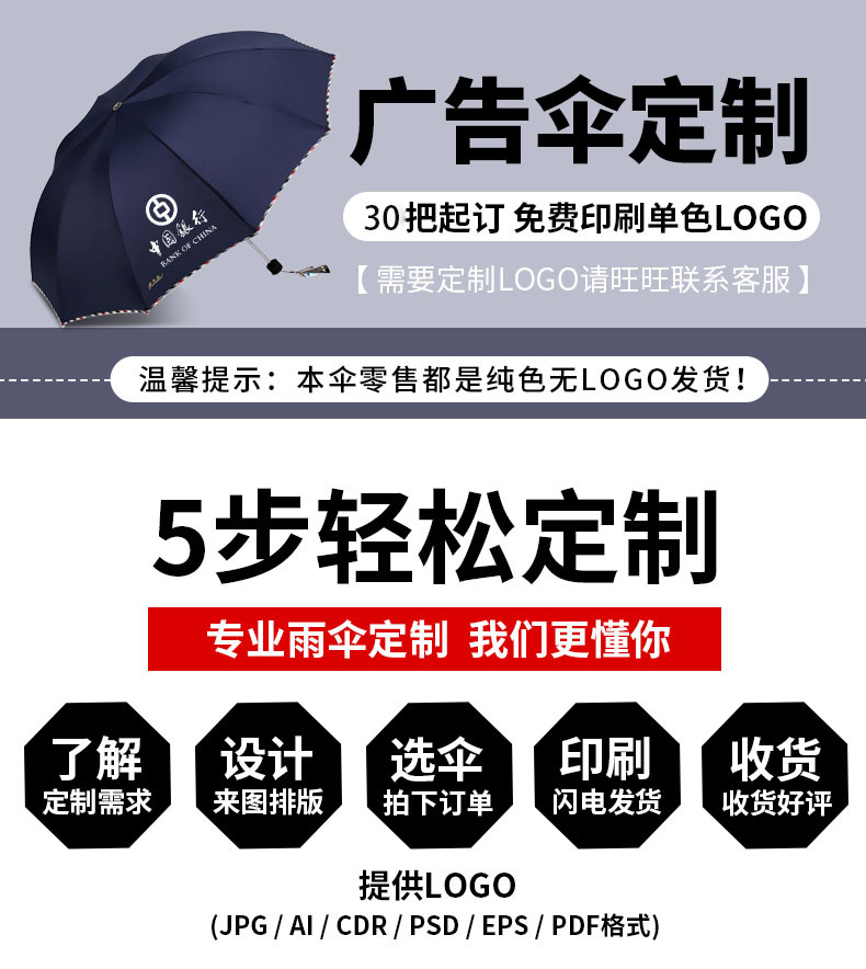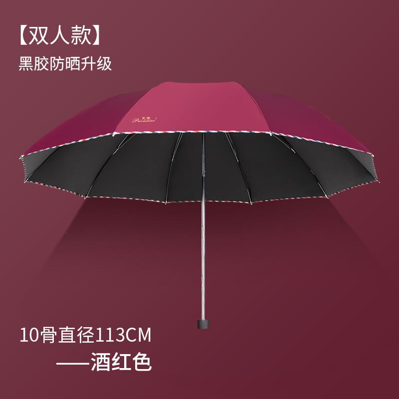 파라다이스 우산 우산 정품 3311E 도매 더블 플러스 사이즈 3 배 검은 접착제 태양 보호 그림 인쇄 로고 광고 우산