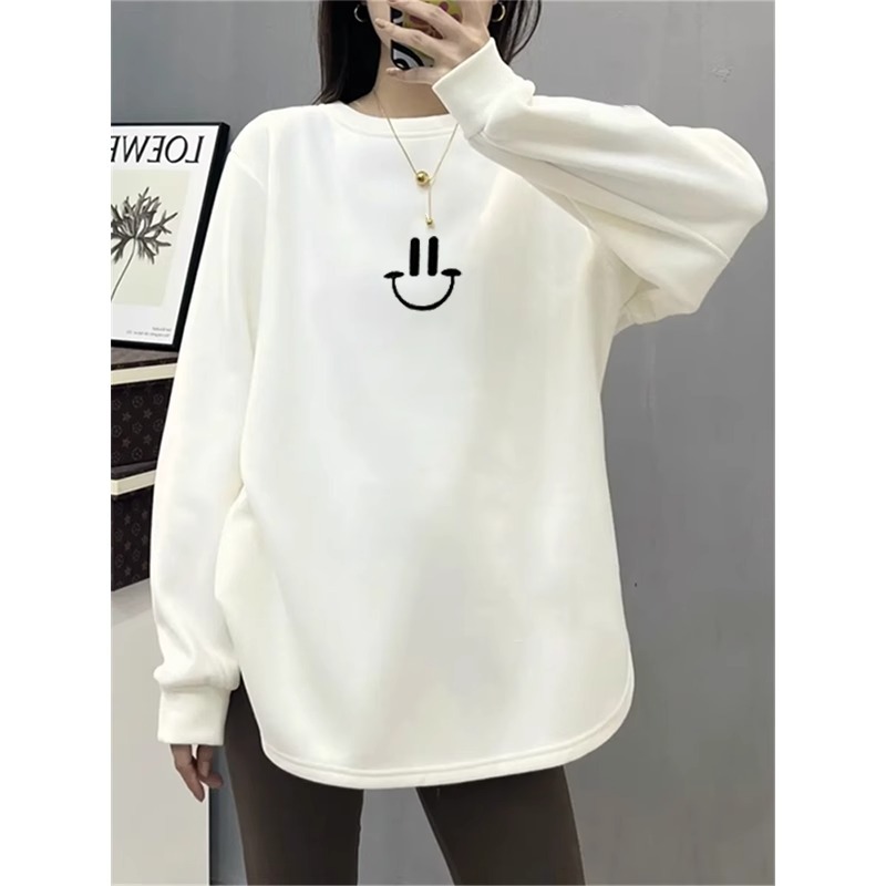 느슨한 벨벳 흰색 스웨터 바닥 셔츠 여성의 가을 중간 길이 분할 긴 소매 티셔츠 두껍게 한 내복 탑스토어 가기