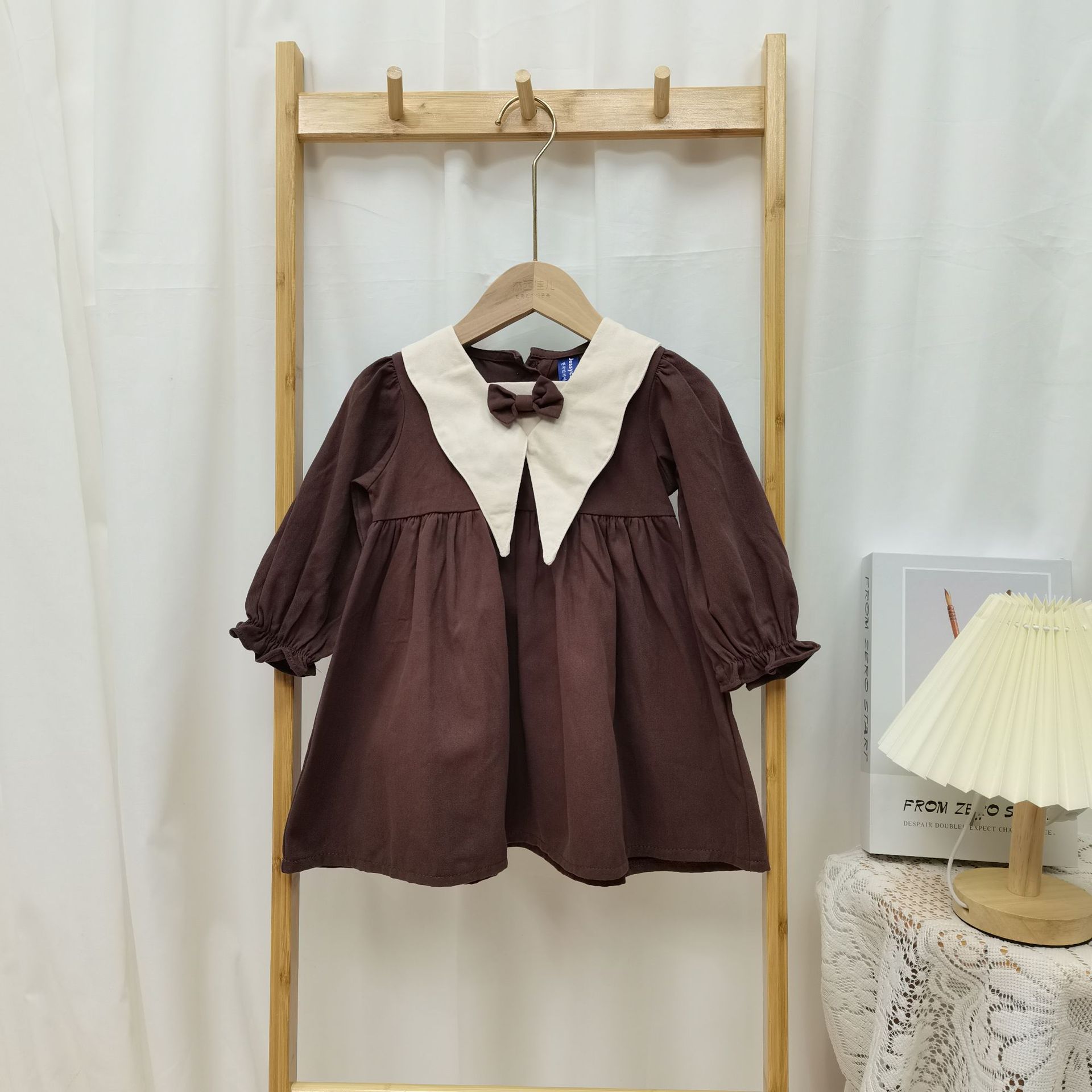 한국 여자 봄, 가을 드레스 어린이 스타일 스커트 어린이 아기 복고풍 긴팔 보우 공주 드레스