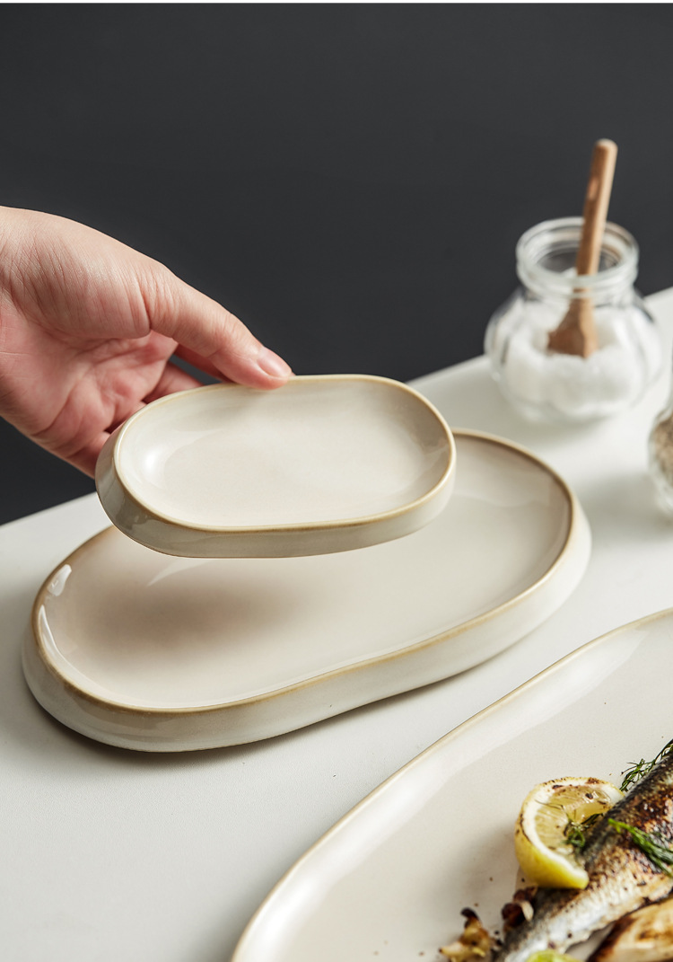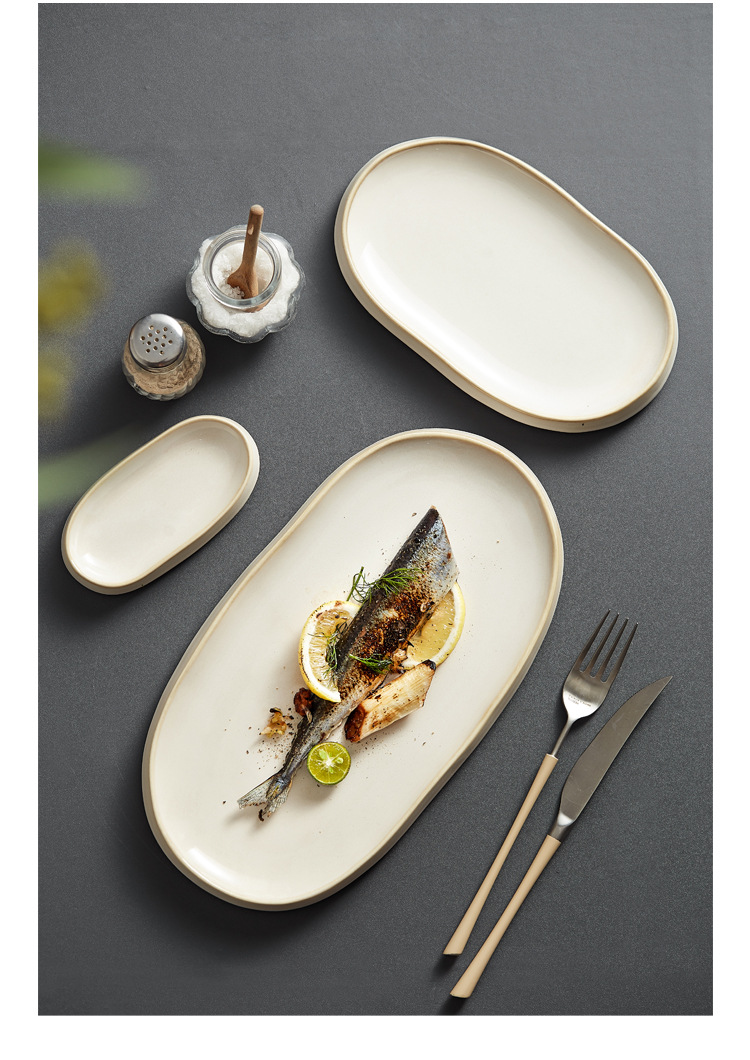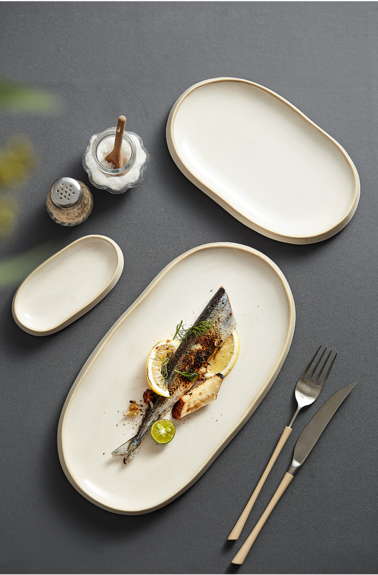 찐 생선 접시 홈 크리에이티브 2023 새로운 스타일 세라믹 식기 쿨 콜드 접시 일본 스타일 바베큐 생선 타원형 요리스토어 가기