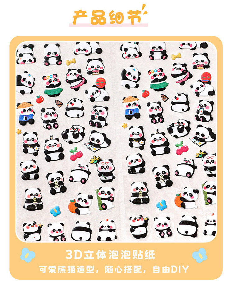 귀여운 만화 3D 팬더 거품 손 계정 스티커 어린이 소녀 장식 DIY goo 카드 소재 스티커