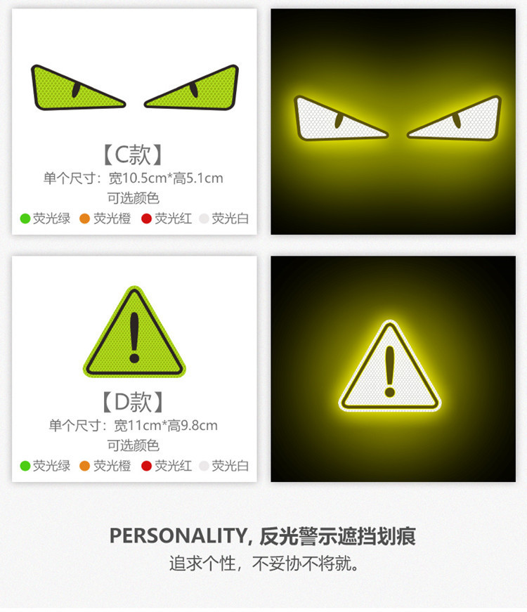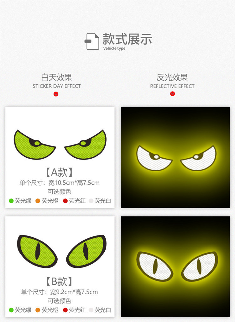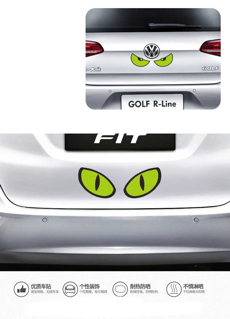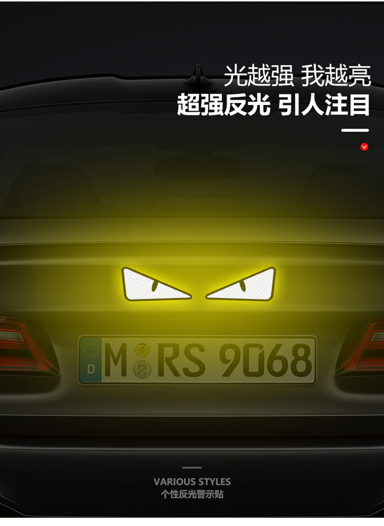 小恶魔怪兽眼睛反光车贴装饰汽车电动车夜光夜间高亮钻石级车身贴