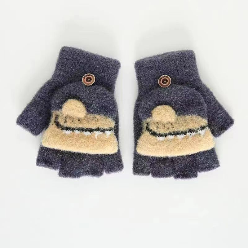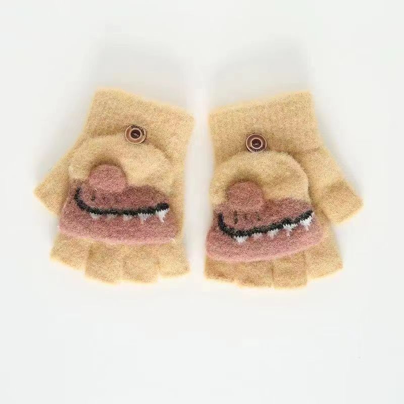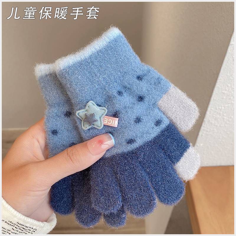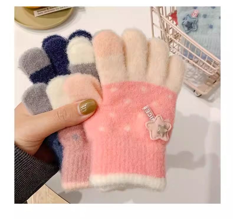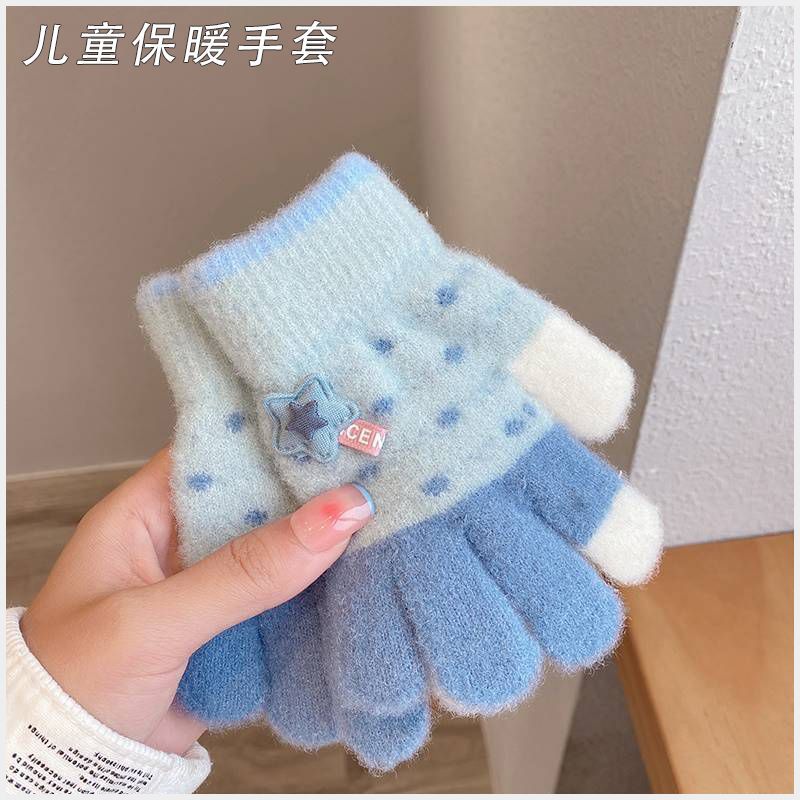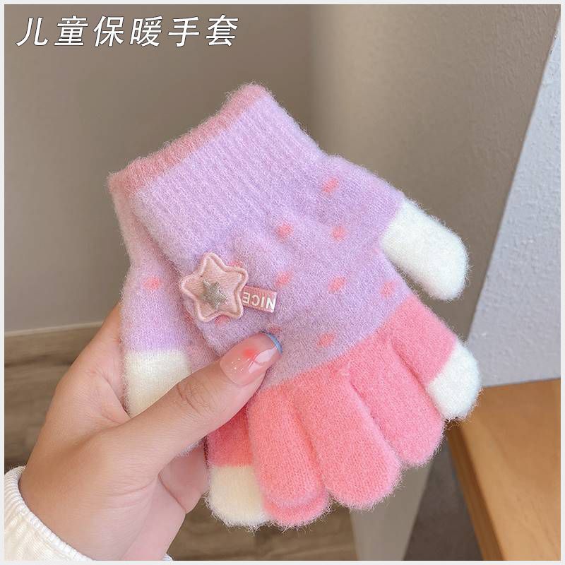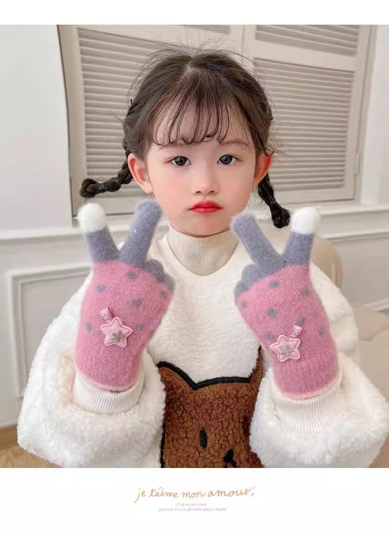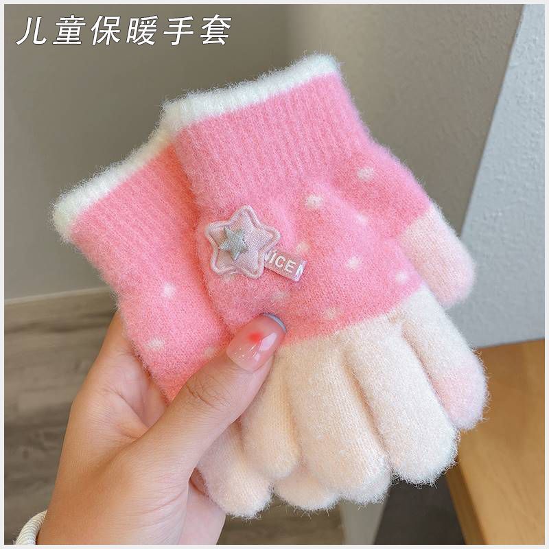 가을, 겨울 어린이 장갑, 소녀와 소년을 위한 귀엽고 따뜻한 어린이 장갑, 겨울용 플러시 벨벳 아기 니트 다섯 손가락 장갑