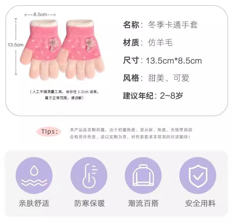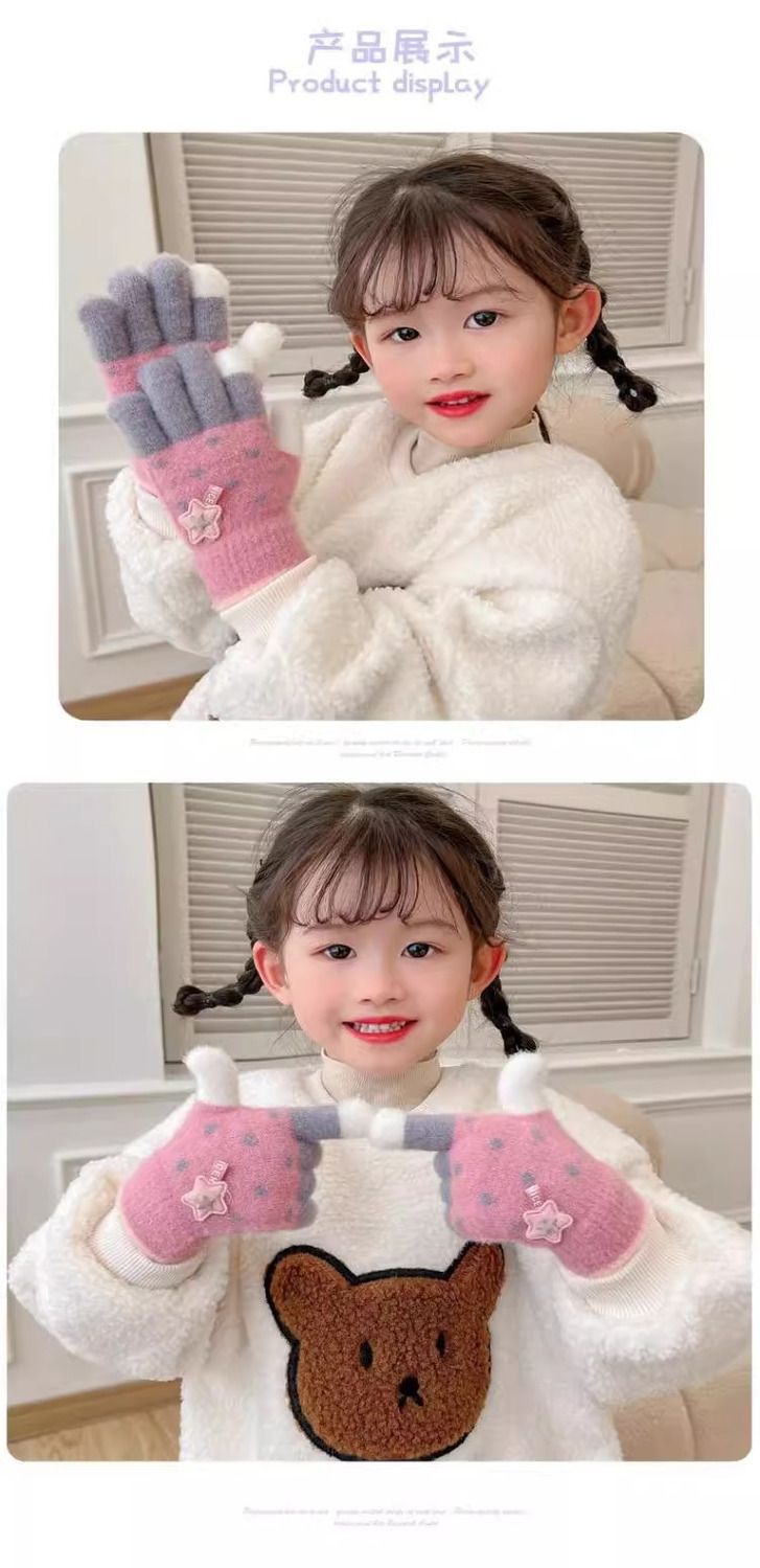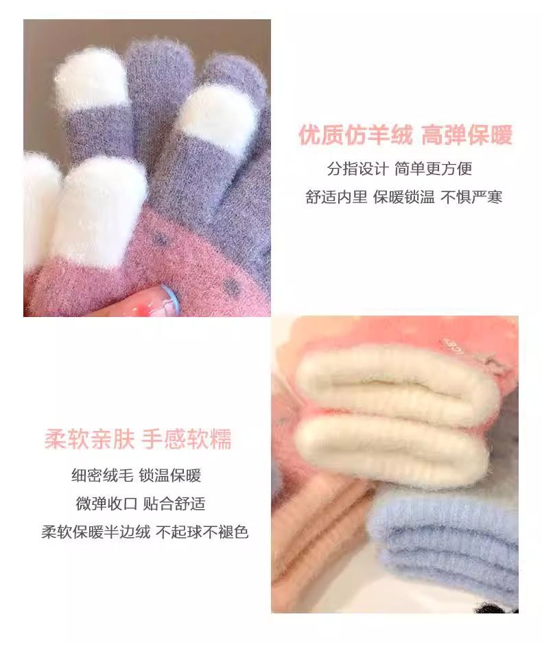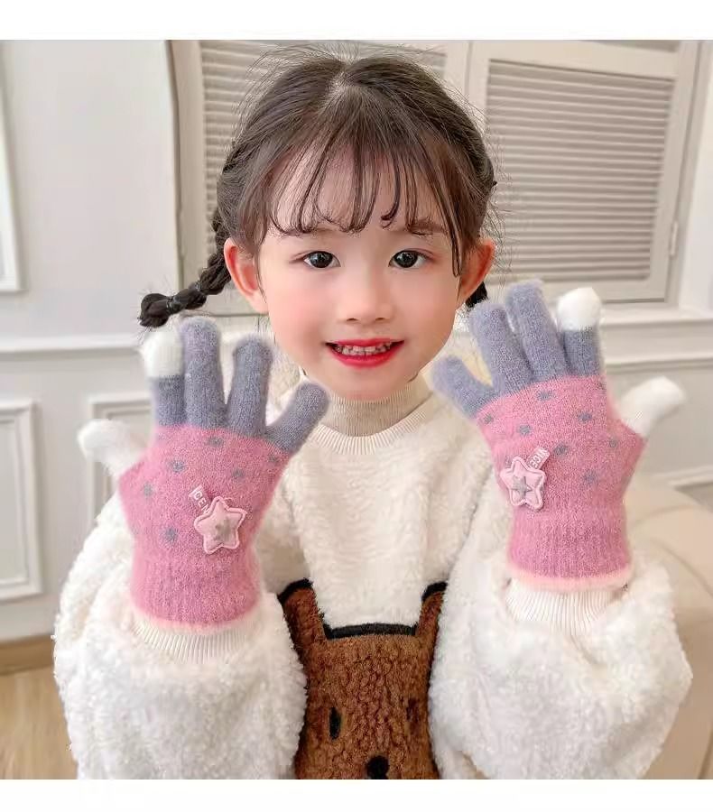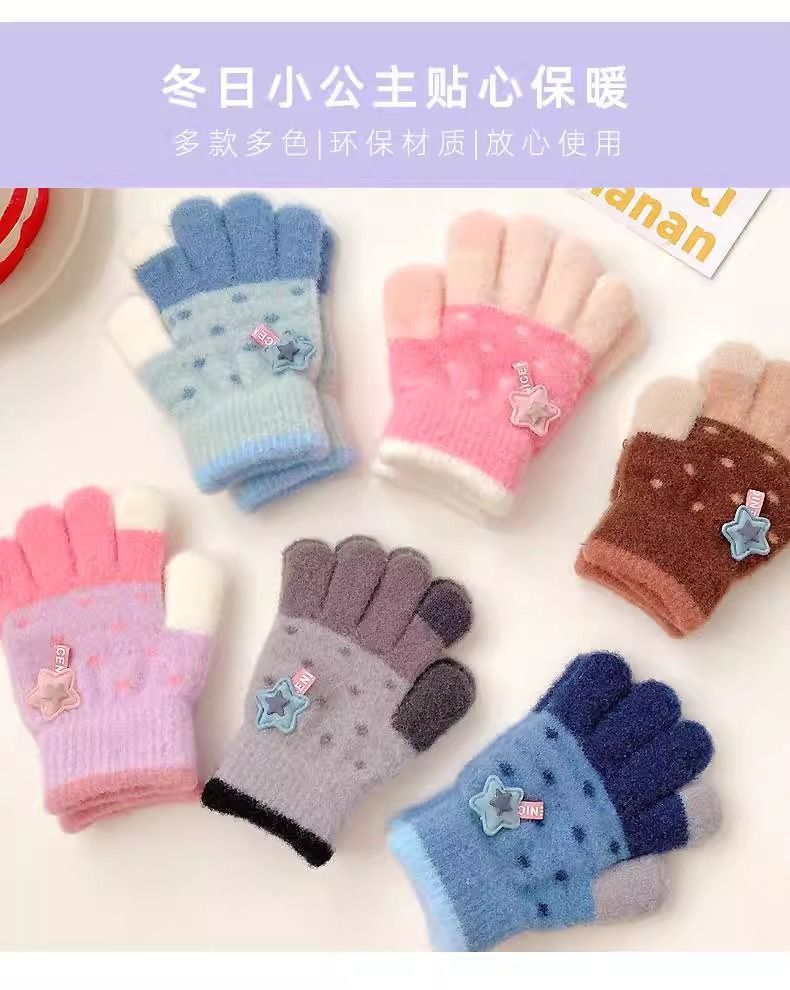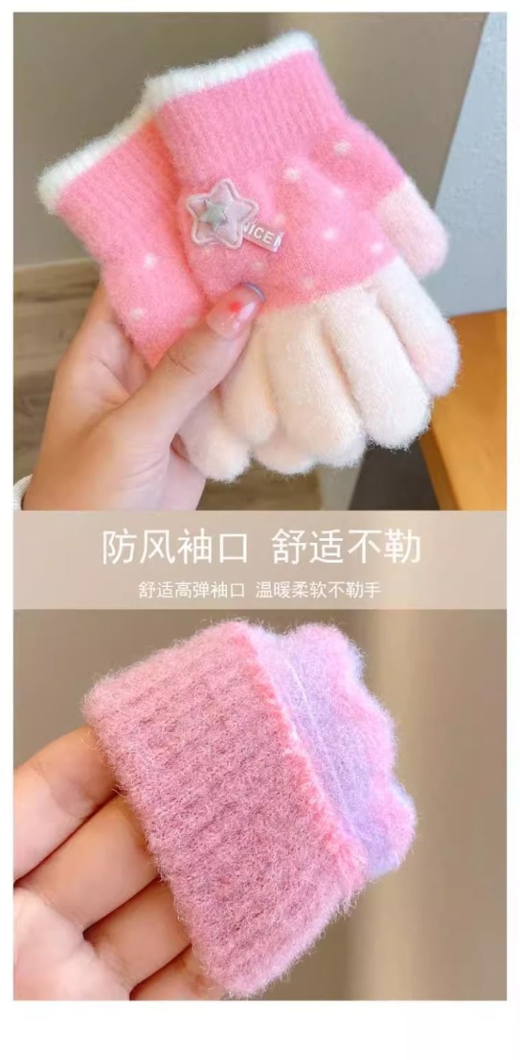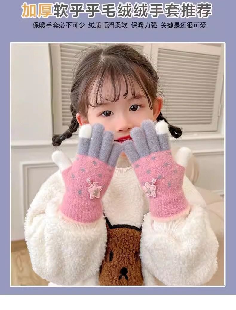 가을, 겨울 어린이 장갑, 소녀와 소년을 위한 귀엽고 따뜻한 어린이 장갑, 겨울용 플러시 벨벳 아기 니트 다섯 손가락 장갑스토어 가기