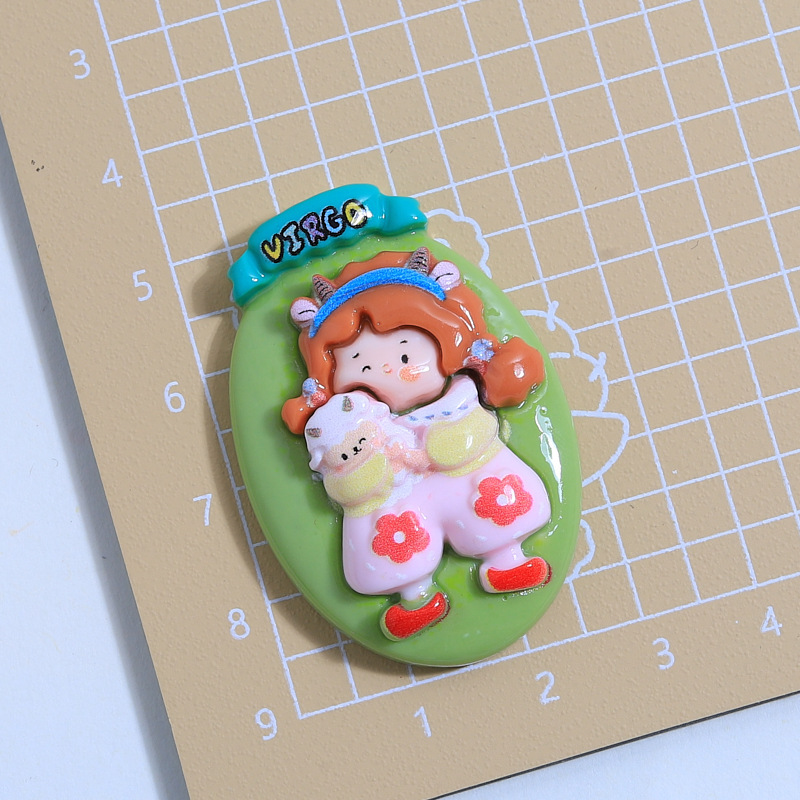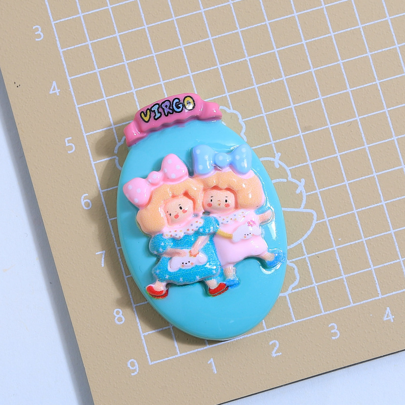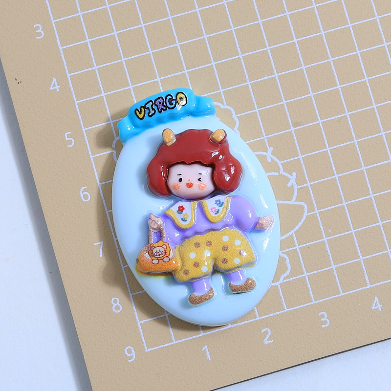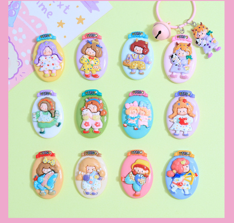 별자리 소녀 라운드 카드 만화 수지 액세서리 diy 작은 보석 크림 접착제 액세서리 수제 펜던트 머리핀 소재