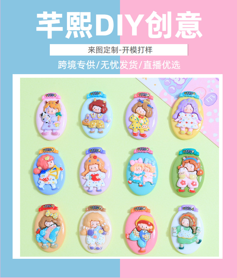 별자리 소녀 라운드 카드 만화 수지 액세서리 diy 작은 보석 크림 접착제 액세서리 수제 펜던트 머리핀 소재스토어 가기