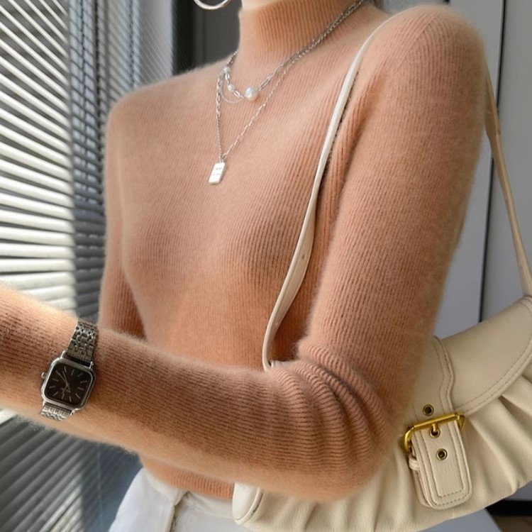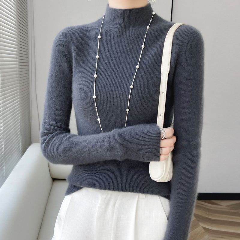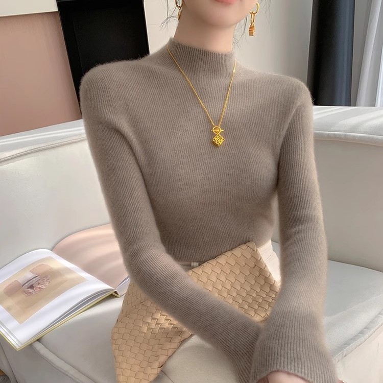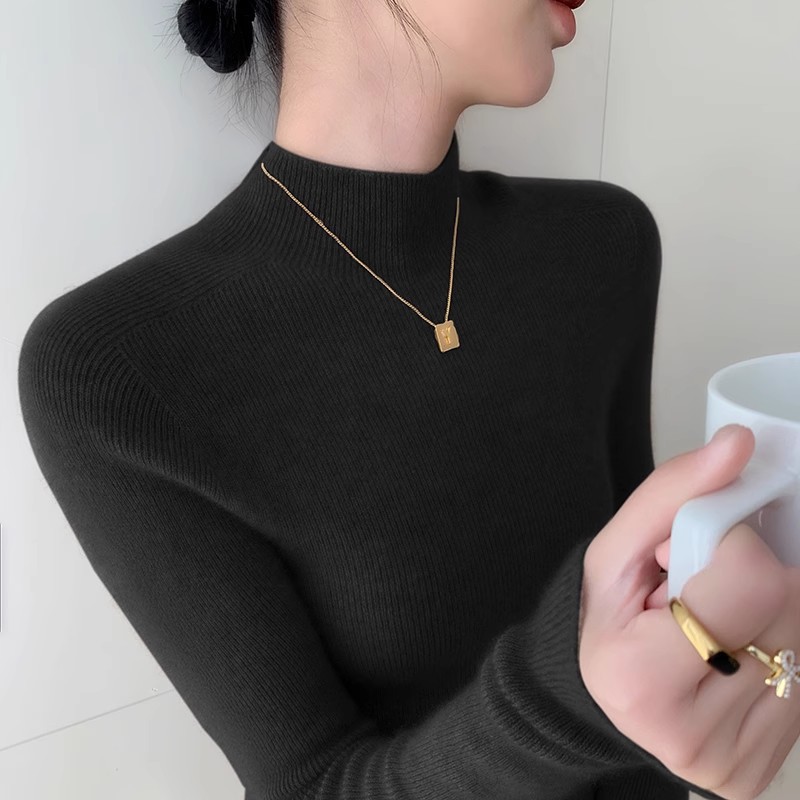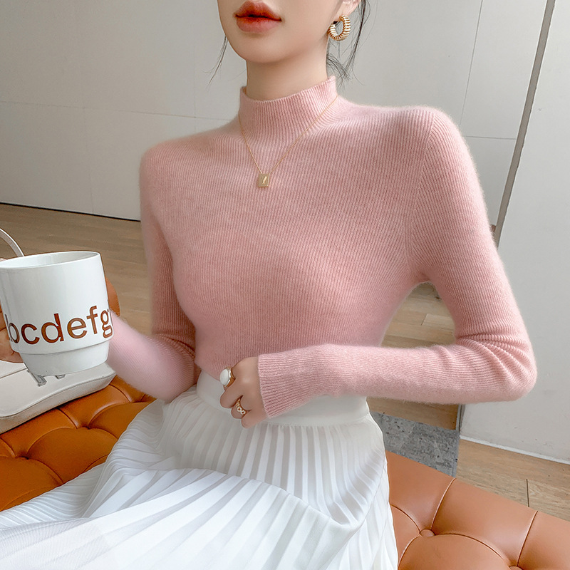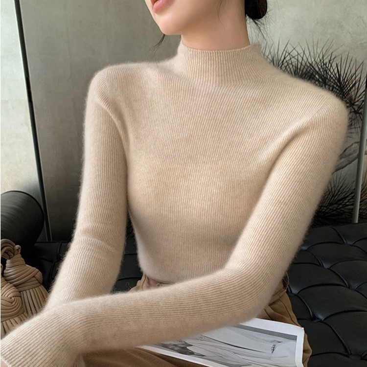 Erdos시에서 하프 터틀넥 스웨터와 함께 원활한 원피스 여성용 슬림 니트 바닥 셔츠스토어 가기