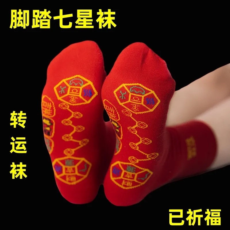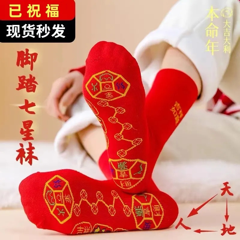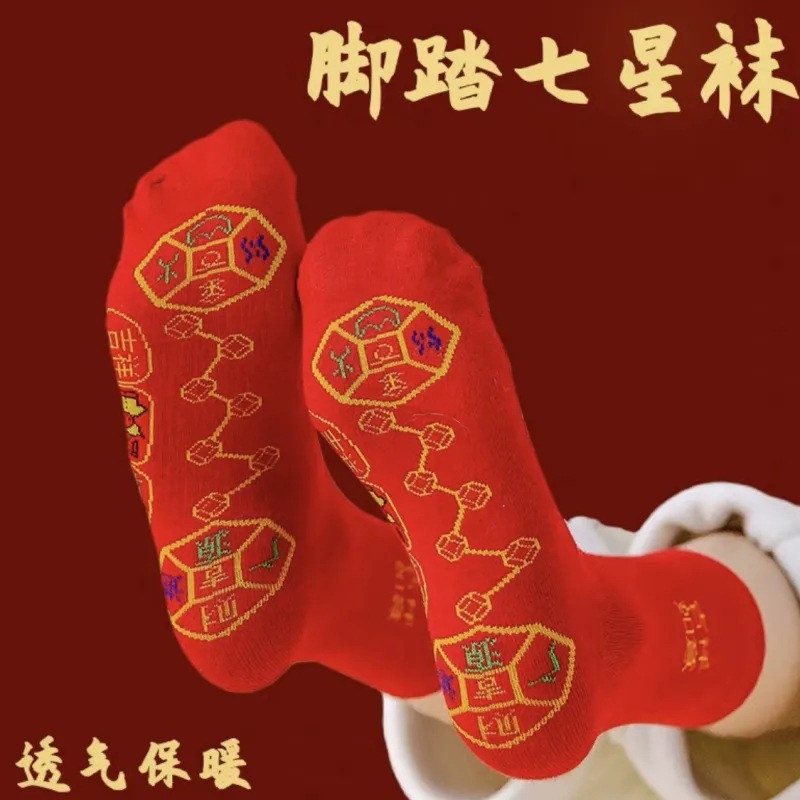 출생 년 빨간 양말 남성과 여성 신부 웨딩 양말 중반 종아리 7 성급 양말 가을과 겨울 큰 빨간색면 양말 땀 흡수성 양말스토어 가기