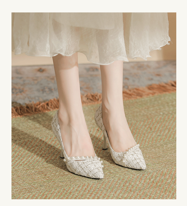 뾰족한 스틸레토 힐 하이힐 슈즈 플러스 사이즈 초대형 넓어진 펄 여성용 슈즈 스몰 사이즈 얕은 입 올 매치 통근 작업스토어 가기