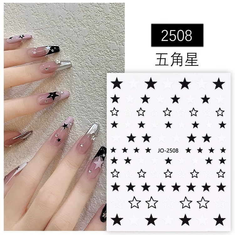 흑백 네일 아트 스티커 2023 새로운 5 개 별 4 개 망싱 러브 보우 네일 쥬얼리 스티커 인터넷 축하 폭발스토어 가기