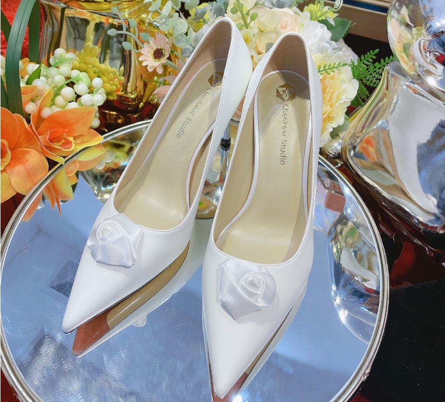 프랑스 결혼식 신발 Xiuhe 메인 웨딩 원피스 양방향 착용 신부는 피곤하지 않은 발 2023 새로운 흰색 하이힐 여성 스틸레토 힐스토어 가기