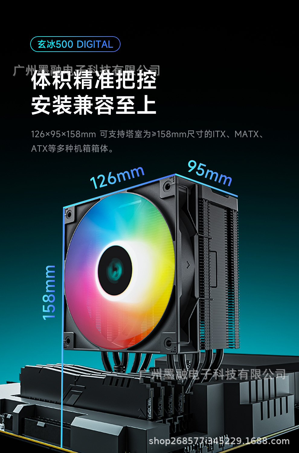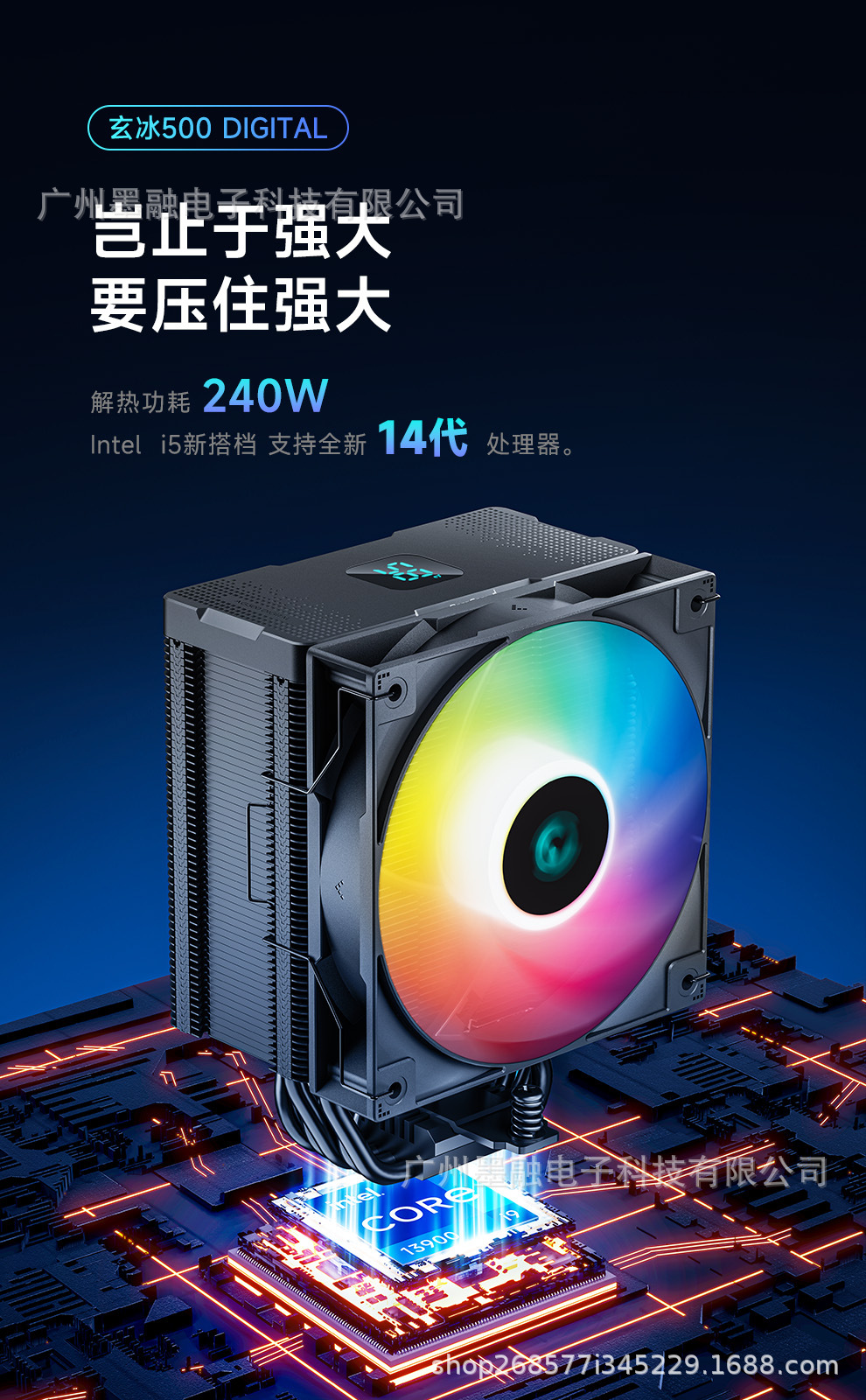큐슈 Fengshen AG500 디지털 디스플레이 CPU 라디에이터 5 개의 구리 튜브 12cm 온도 제어 ARGB 동기 시각화 온도스토어 가기
