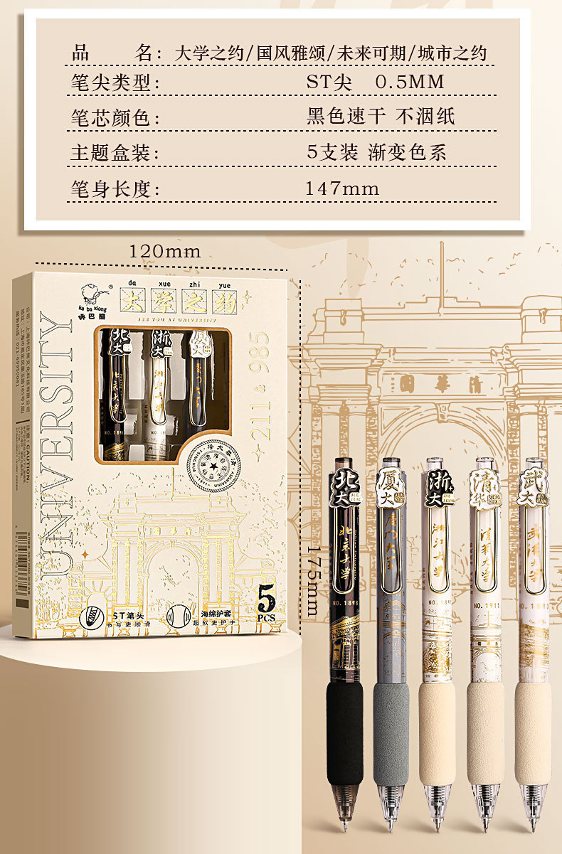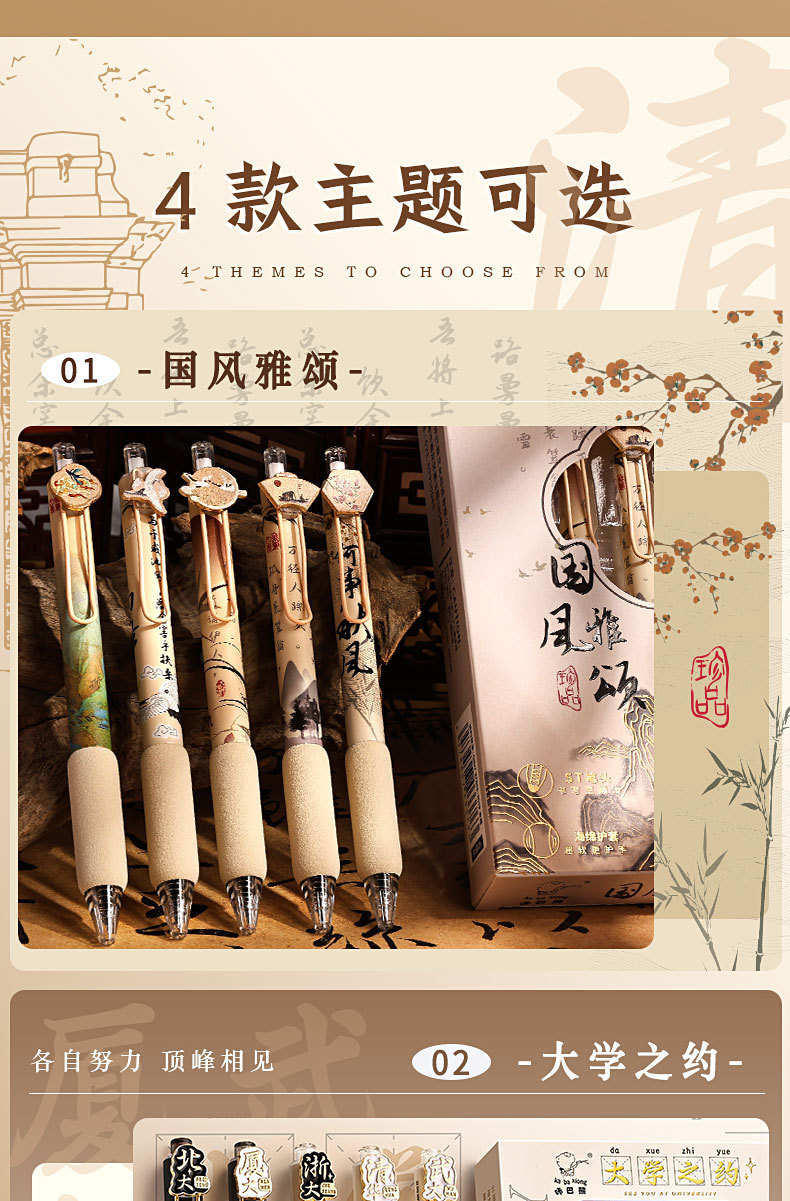 높은 가치의 Guofeng 젤 펜 학생 프레스 젤 펜 퀵 드라이 브러시 펜 세트 블랙 펜 카본 펜 볼펜