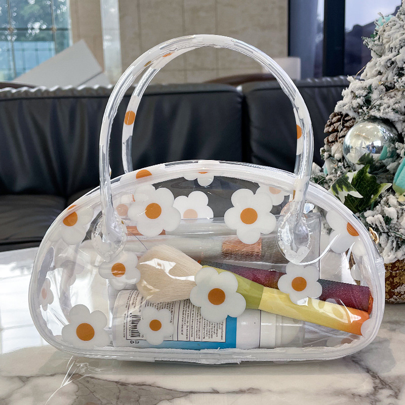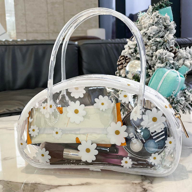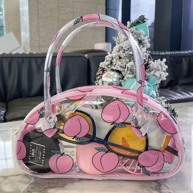 공장 직접 패션 투명 인쇄 pvc 핸드백 방수 휴대용 대용량 쇼핑 가방 저장 가방