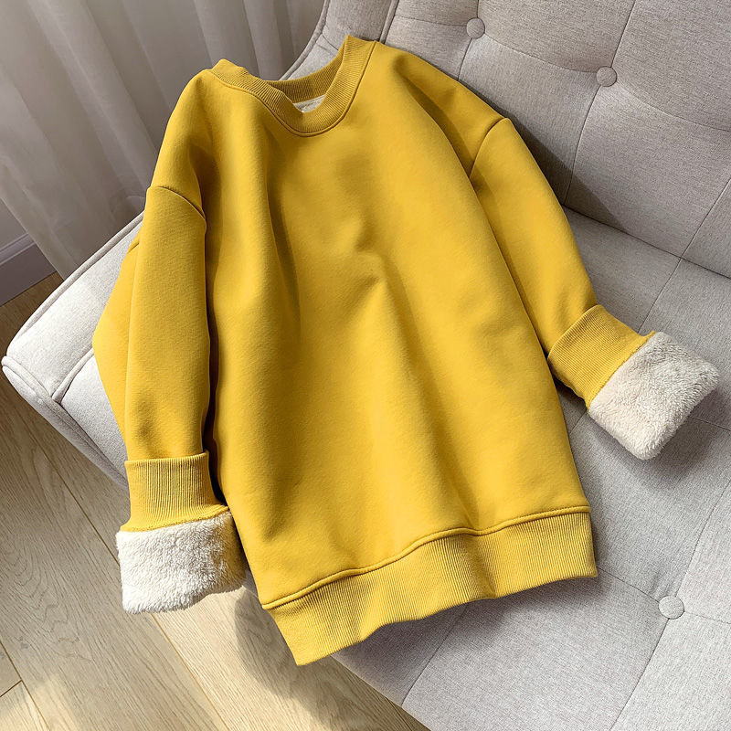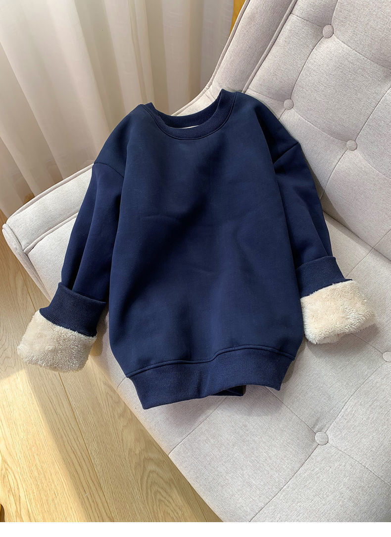 Lambswool 기모 스웨터 라운드 넥 탑 남성과 여성의 느슨한 새로운 따뜻한 가을과 겨울 코트 커플의 최고 패션