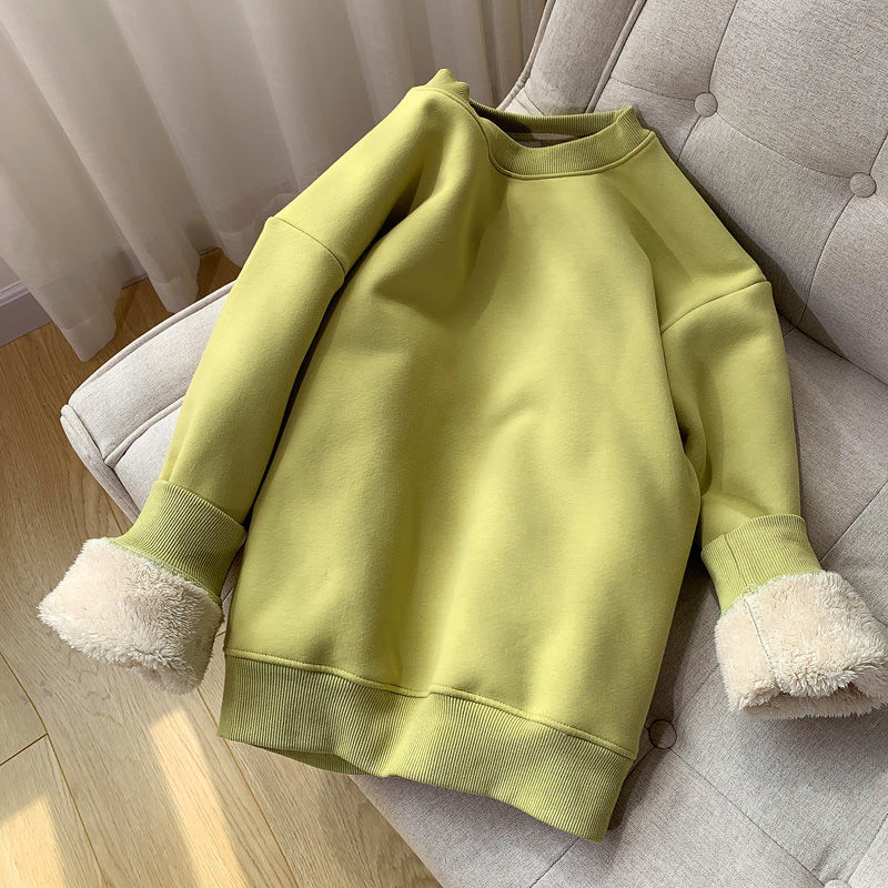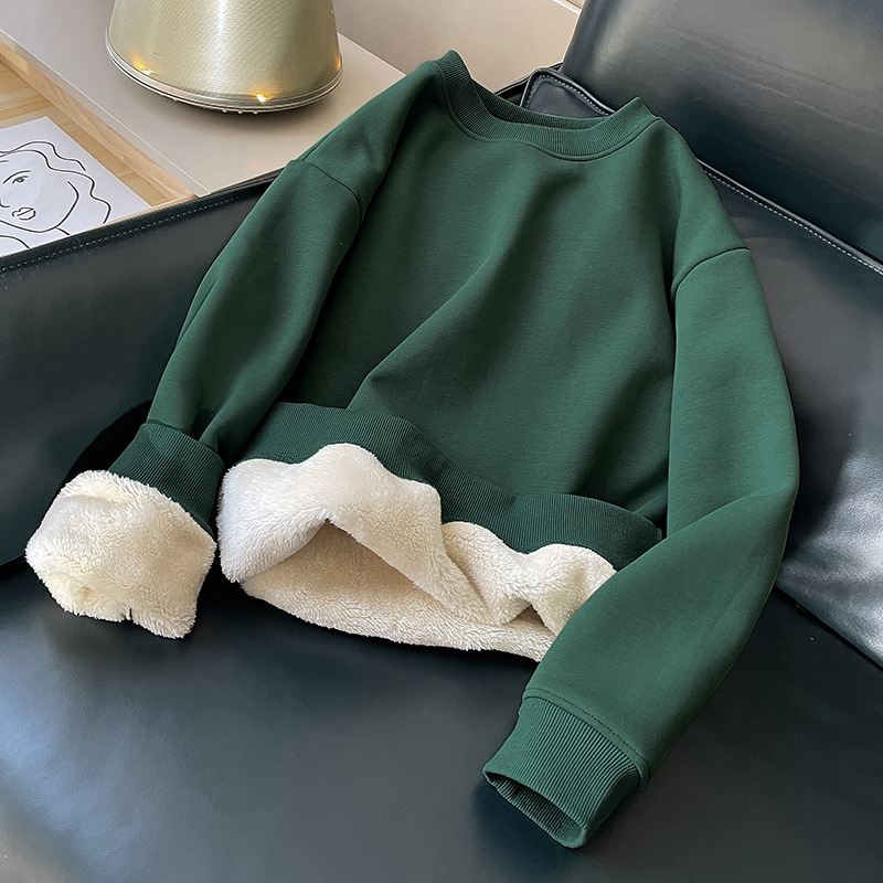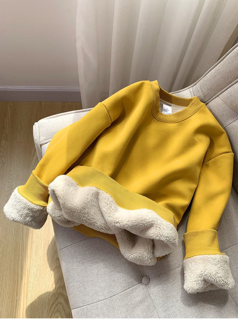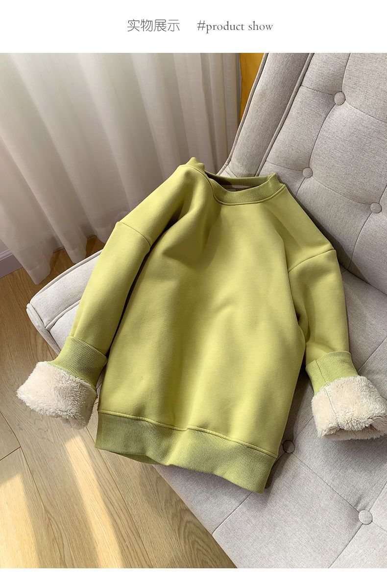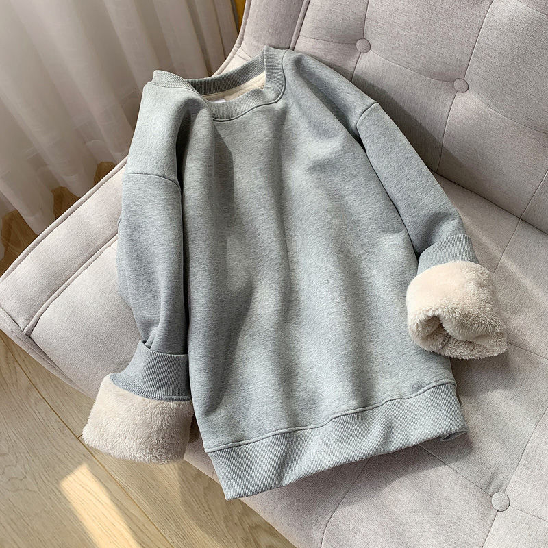 Lambswool 기모 스웨터 라운드 넥 탑 남성과 여성의 느슨한 새로운 따뜻한 가을과 겨울 코트 커플의 최고 패션스토어 가기