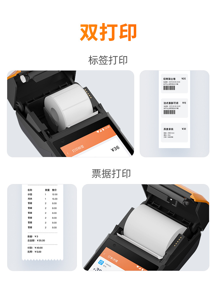 Sunmi V2s 모바일 휴대용 금전 등록기 라벨 영수증 프린터 멀티 플랫폼 주문 스캔 코드 지불 V3