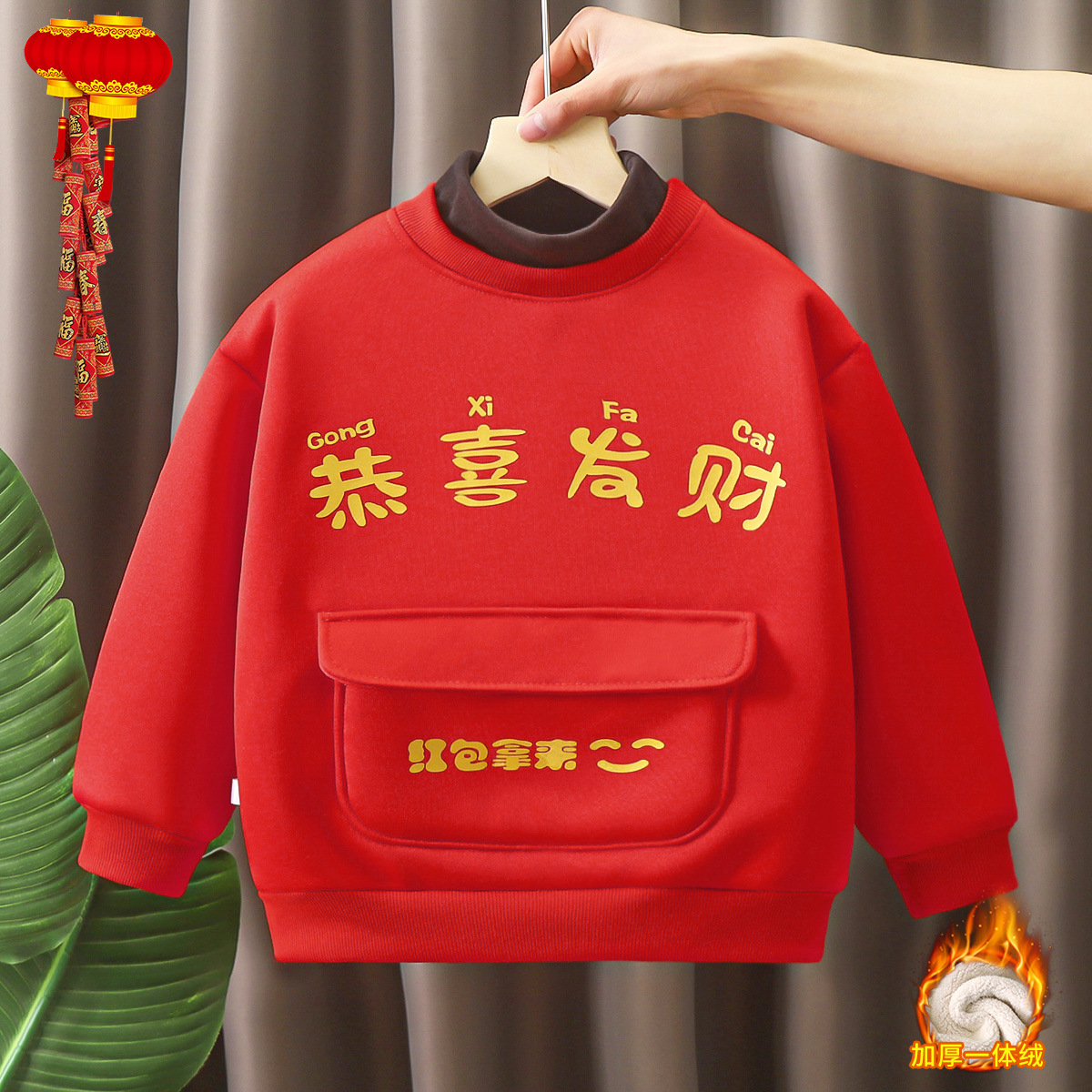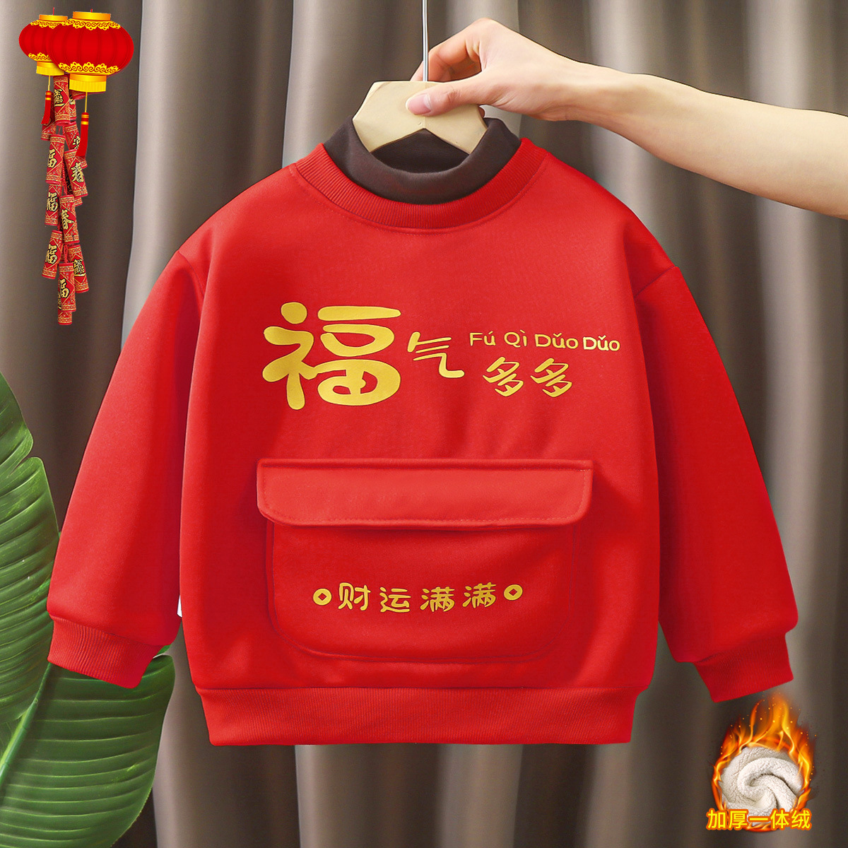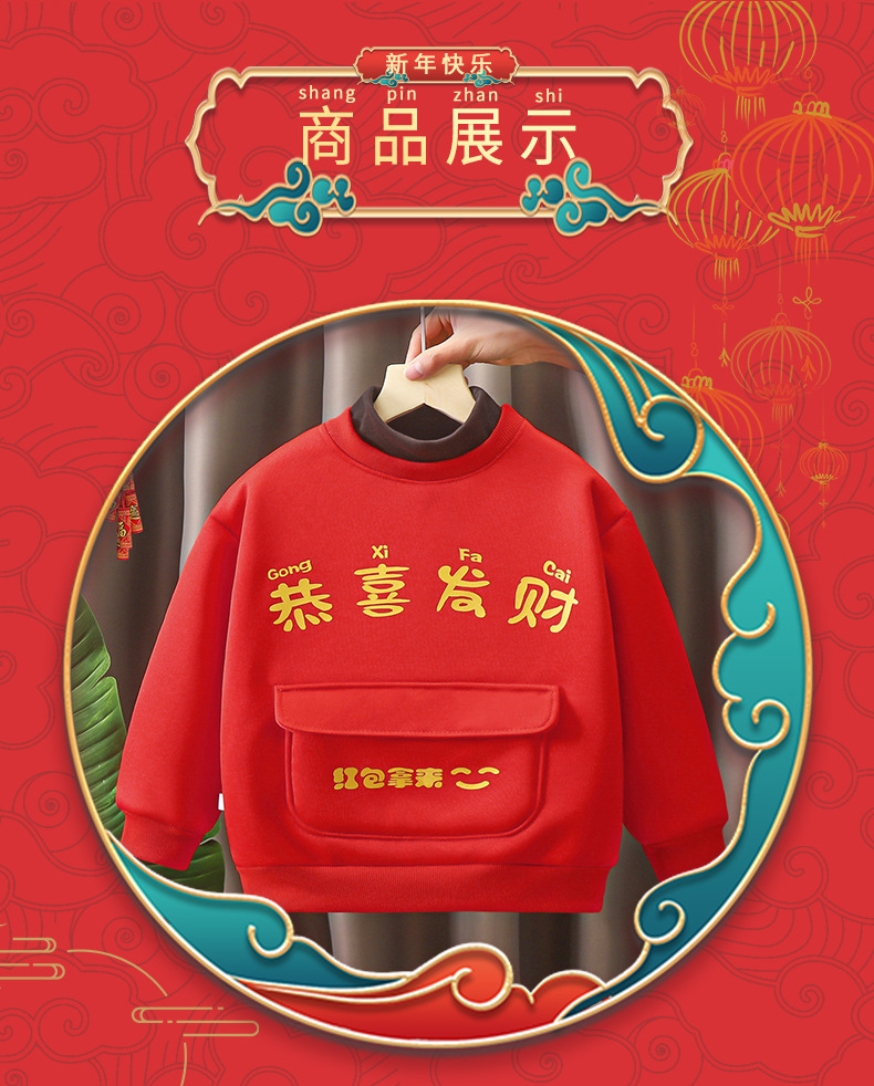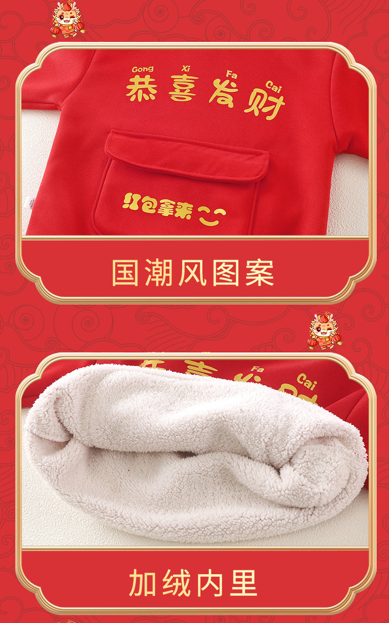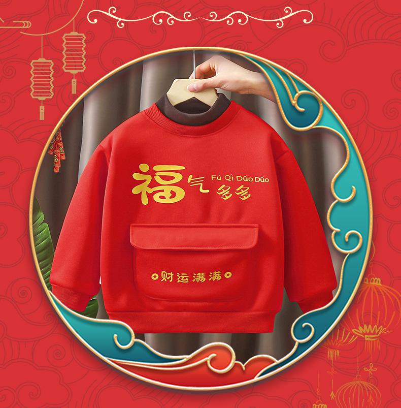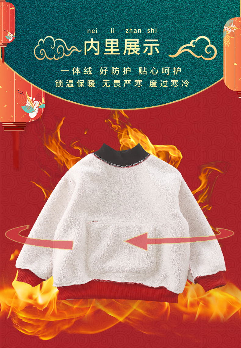 어린이용 새해맞이 의상, 가을 겨울 스타일, 남아 여아용 중국풍 말년 새해복, 양털 플리스 스웨트셔츠, 중소형 아동용스토어 가기