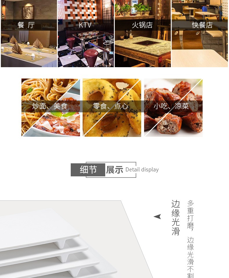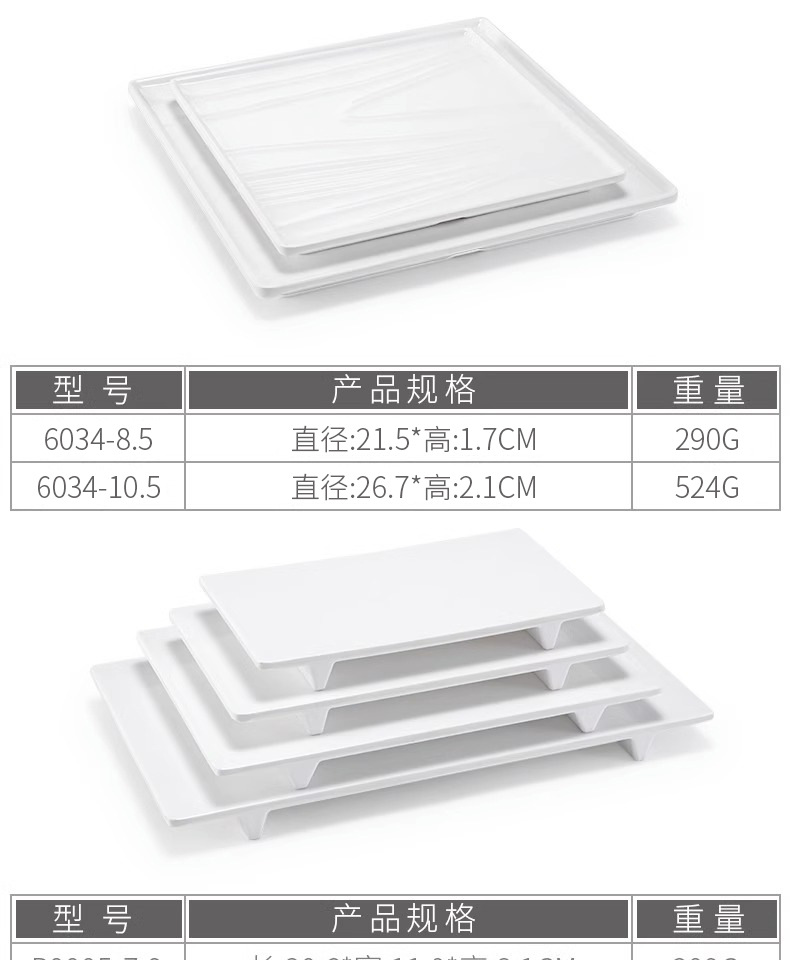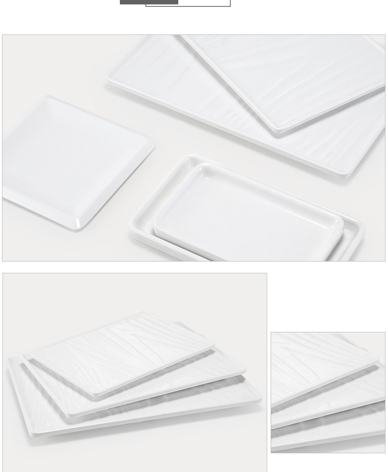 멜라민 얕은 판 평판 상업용 일본식 흰색 도자기 같은 플라스틱 트레이 직사각형 평평한 서쪽 판스토어 가기