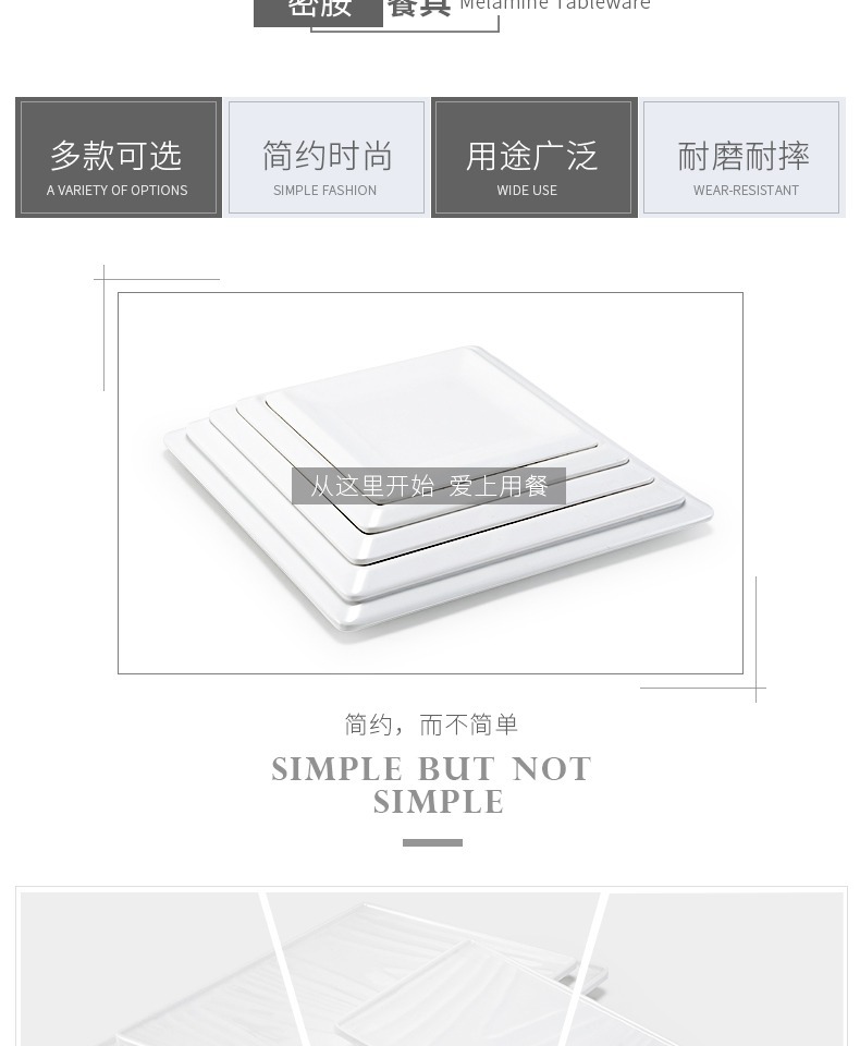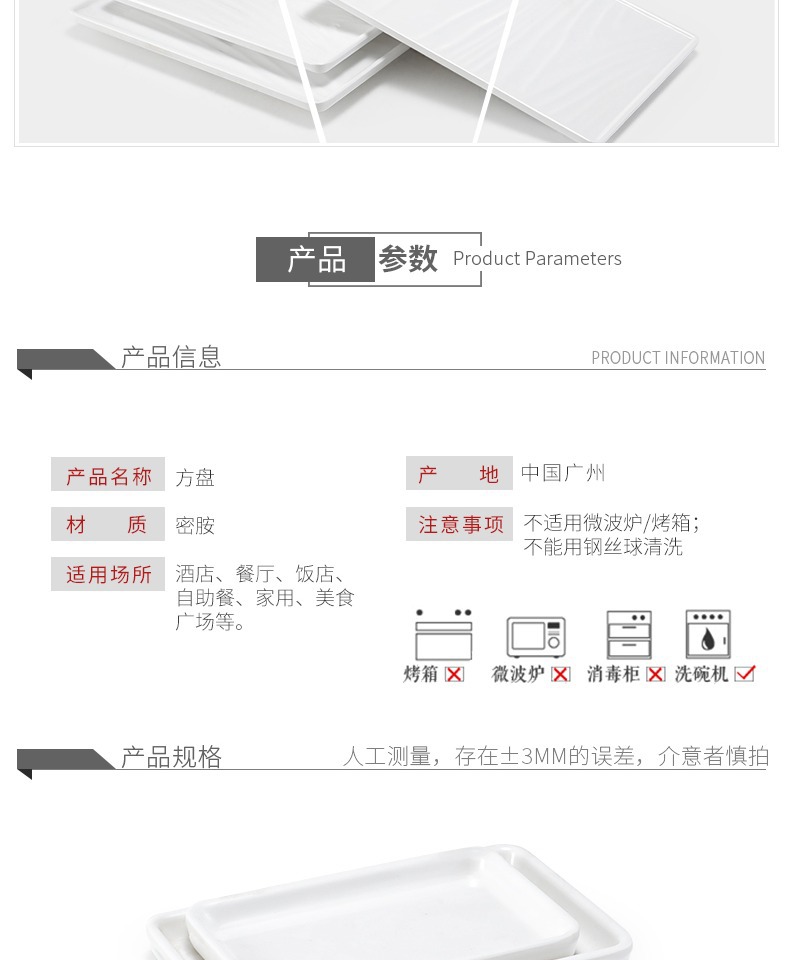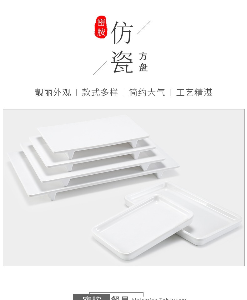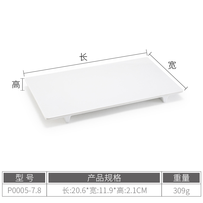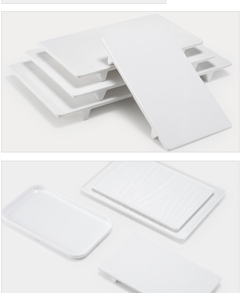 멜라민 얕은 판 평판 상업용 일본식 흰색 도자기 같은 플라스틱 트레이 직사각형 평평한 서쪽 판