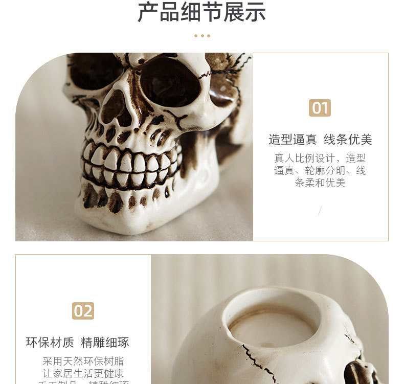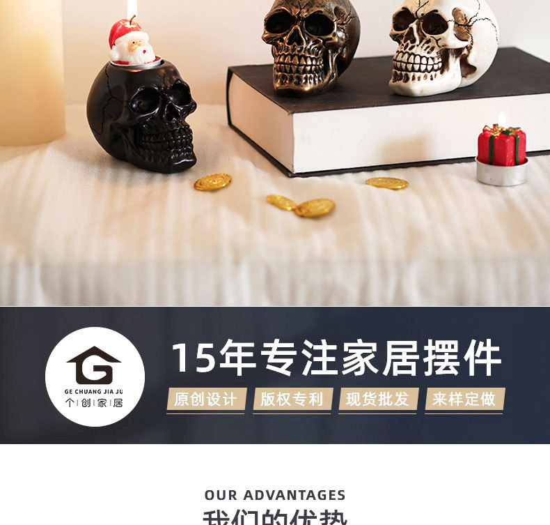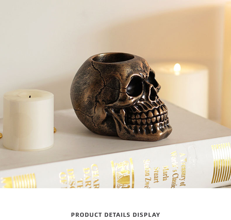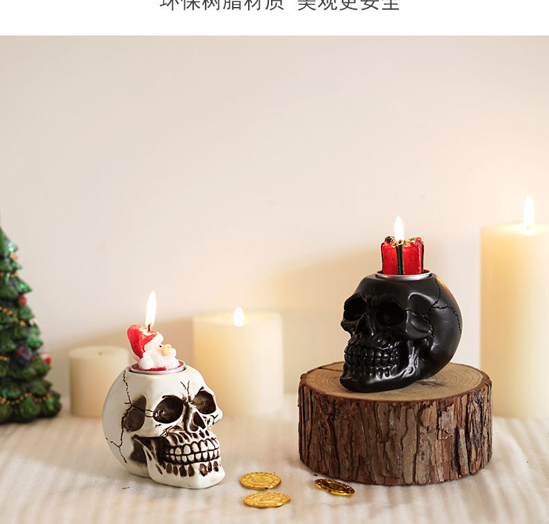 국경 간 새로운 유럽 스타일 작은 해골 촛대 분위기 장식 두개골 머리 장식품 살해 소품 수지 공예스토어 가기