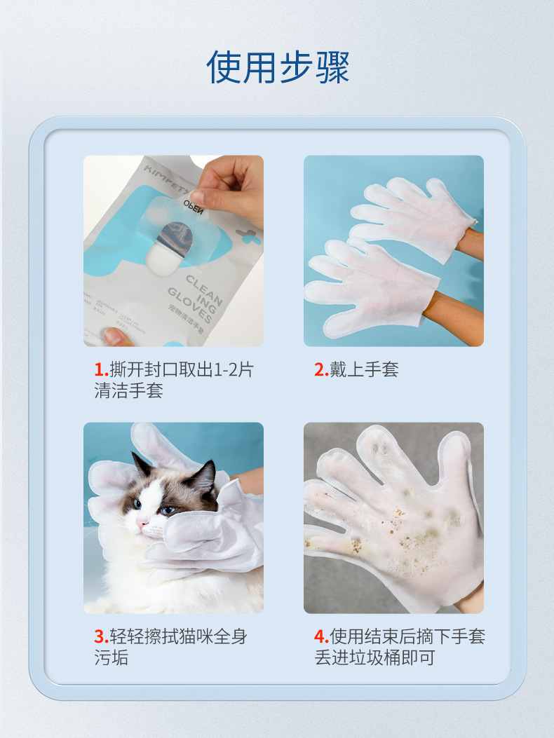 애완 동물 일회용 장갑 고양이 개 머리 제거 탈취 물티슈 목욕 드라이 클리닝 부직포 청소 용품스토어 가기