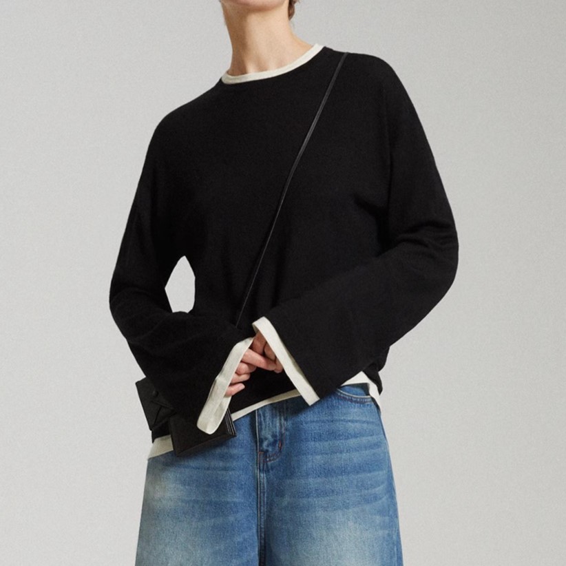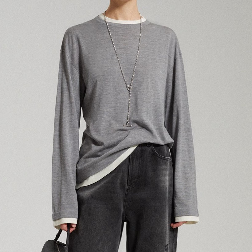 독일 BIELLA160s 금모 120s 빨 수있는 대비 색상 가짜 투피스 멀티 칼라 니트 베이스스토어 가기