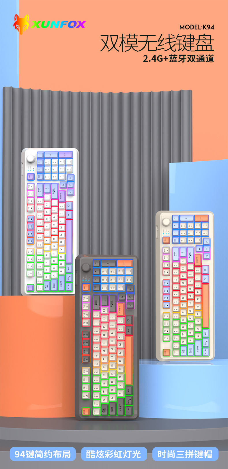 Xuanyin Fox K94 무선 블루투스 듀얼 모드 기계식 터치 키보드 게임 전자 스포츠 사무실 키보드 컴퓨터 노트북스토어 가기