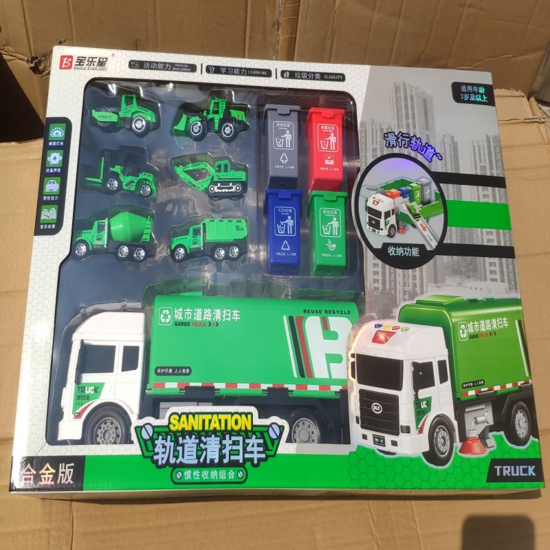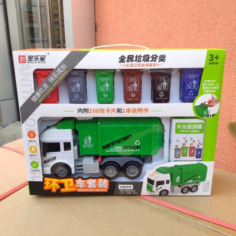 도매 baolexing 어린이 소리와 가벼운 이야기 퍼즐 쓰레기 분류 상자 덤프 트럭 이송 차량 관성 위생 차량스토어 가기