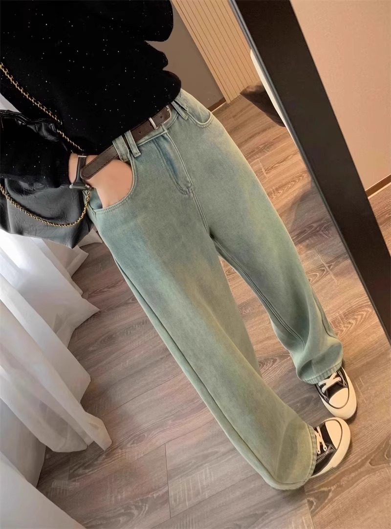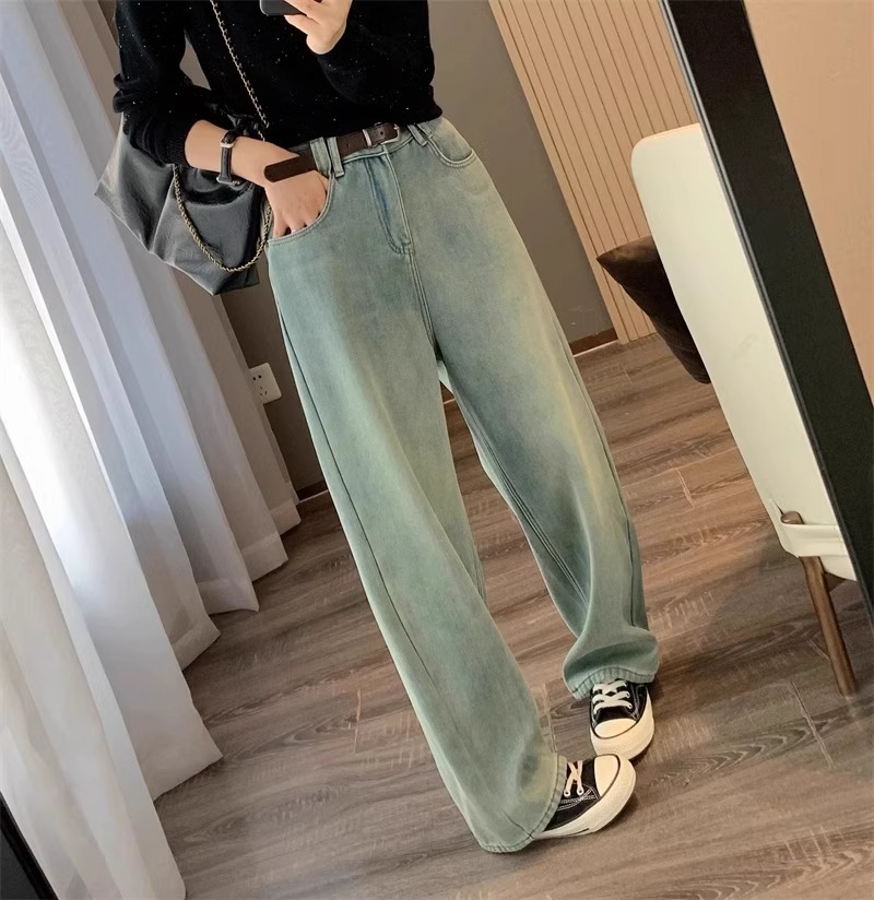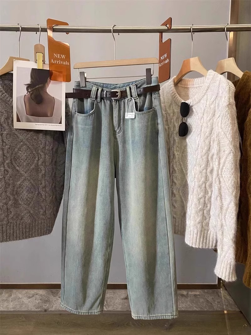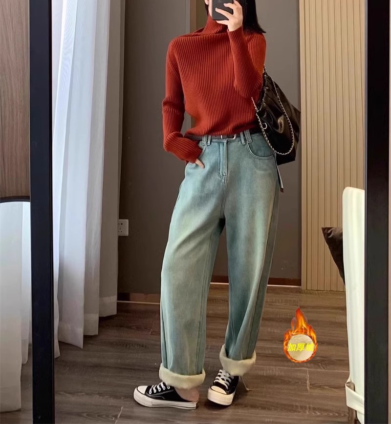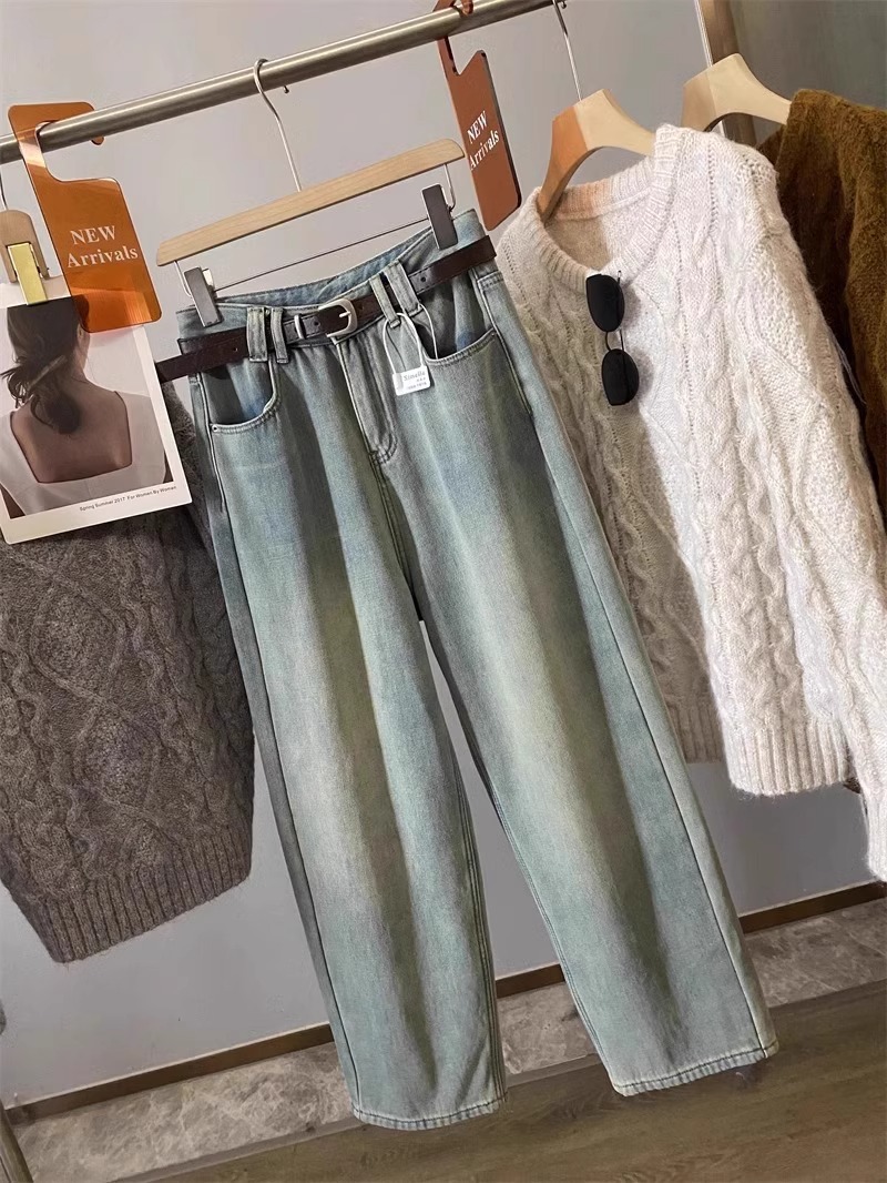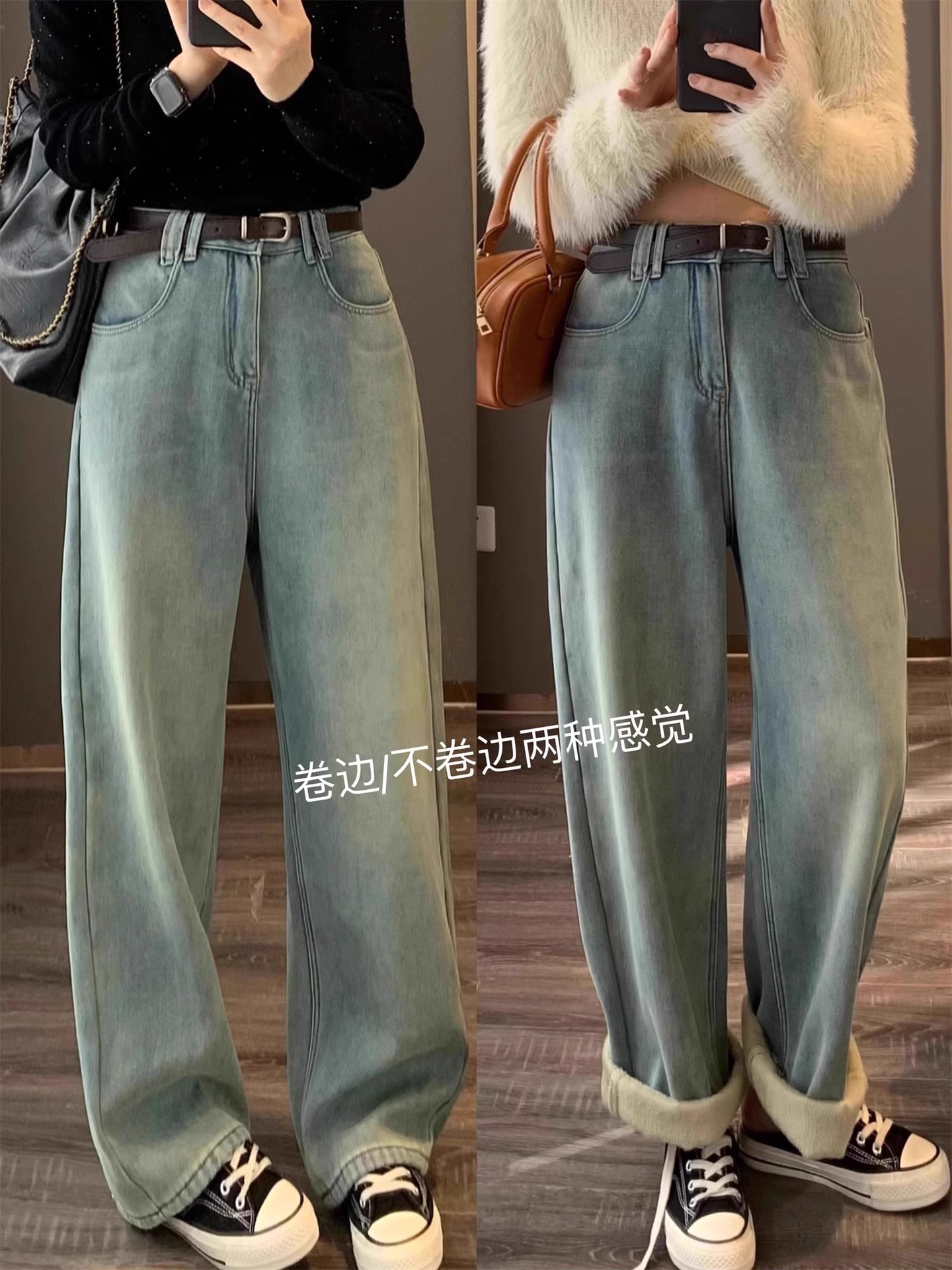 틈새 기모 따뜻한 하렘 청바지 여성의 가을과 겨울 느슨한 슬리밍 스트레이트 아빠 바지 올해 인기스토어 가기