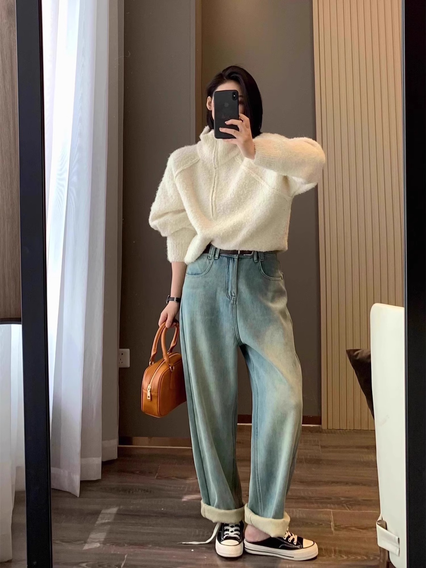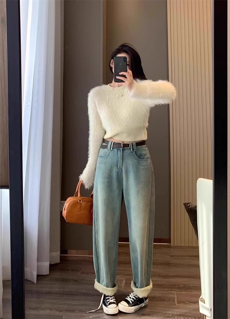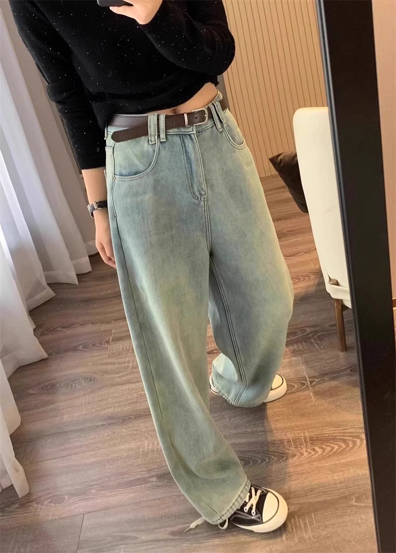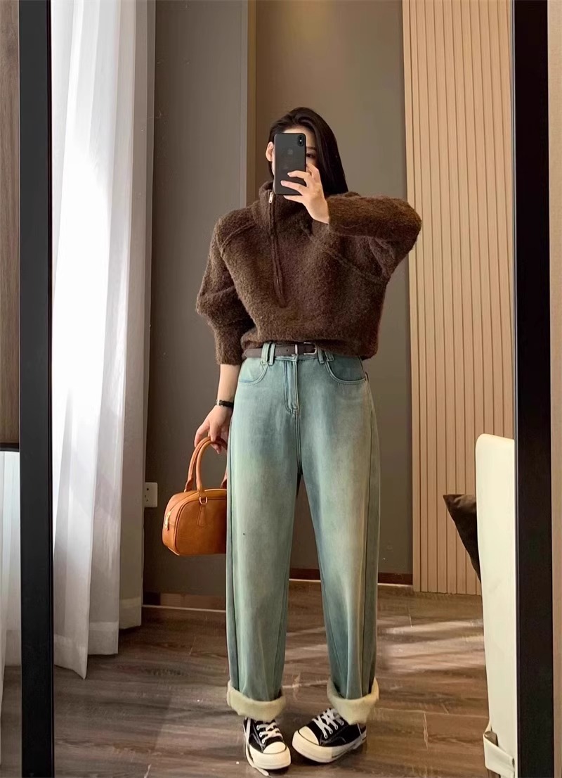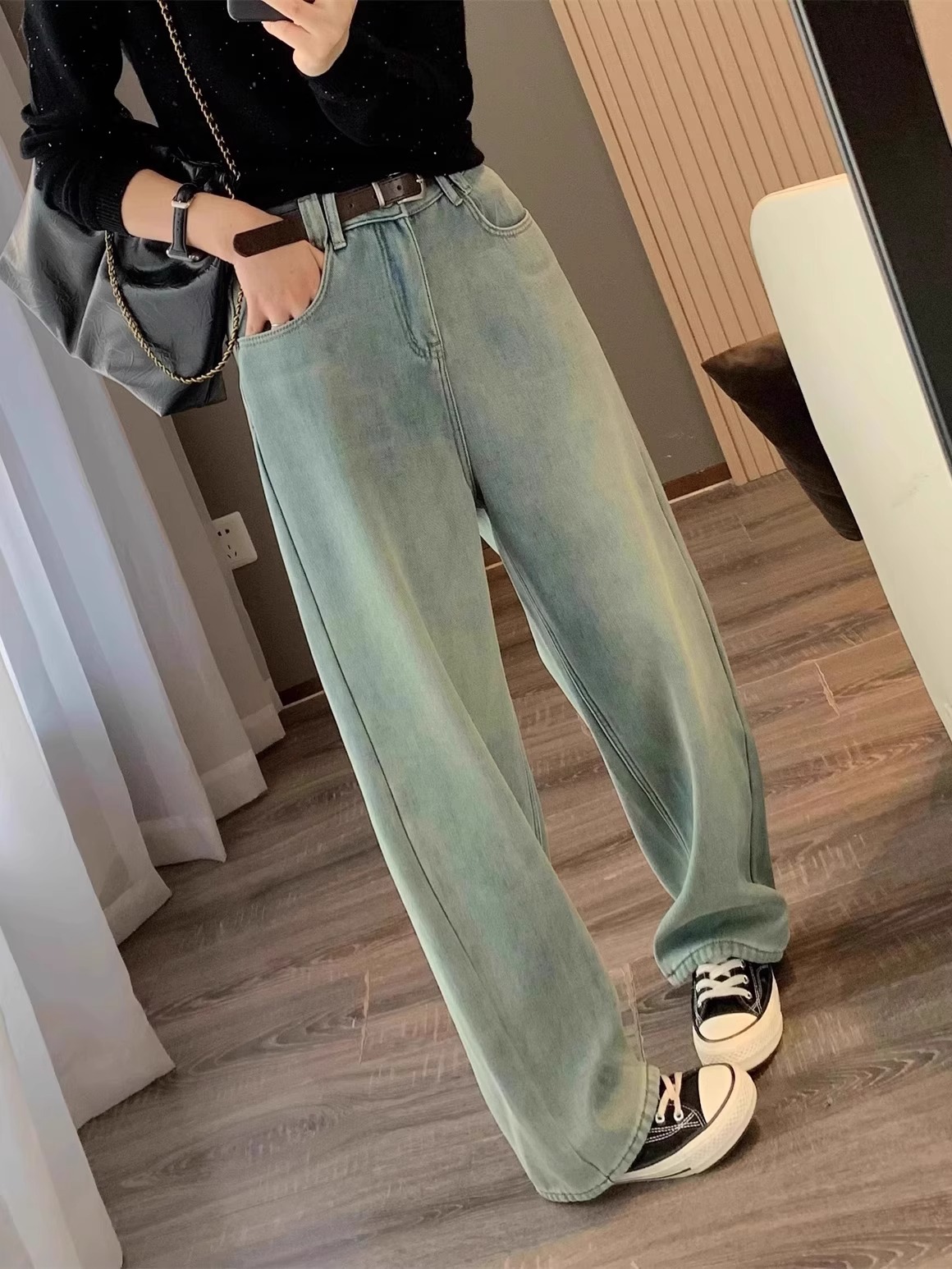 틈새 기모 따뜻한 하렘 청바지 여성의 가을과 겨울 느슨한 슬리밍 스트레이트 아빠 바지 올해 인기스토어 가기