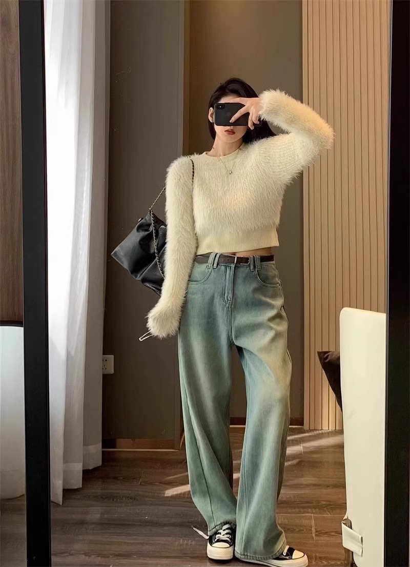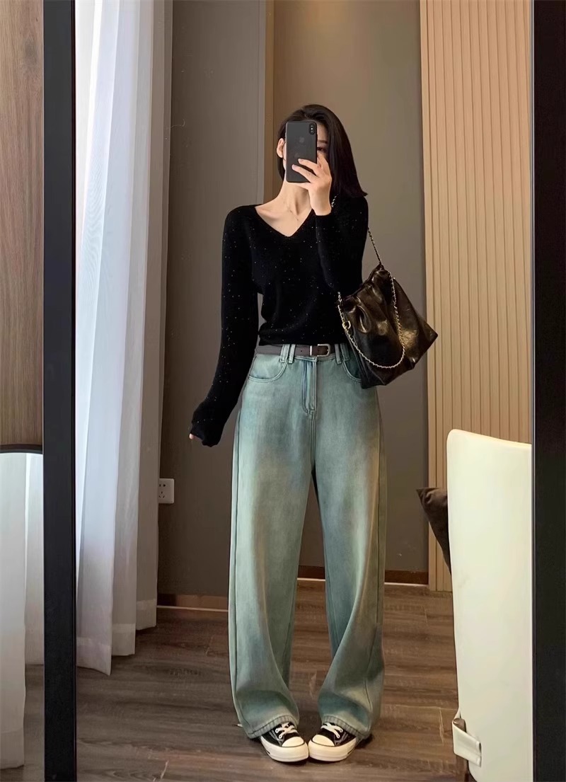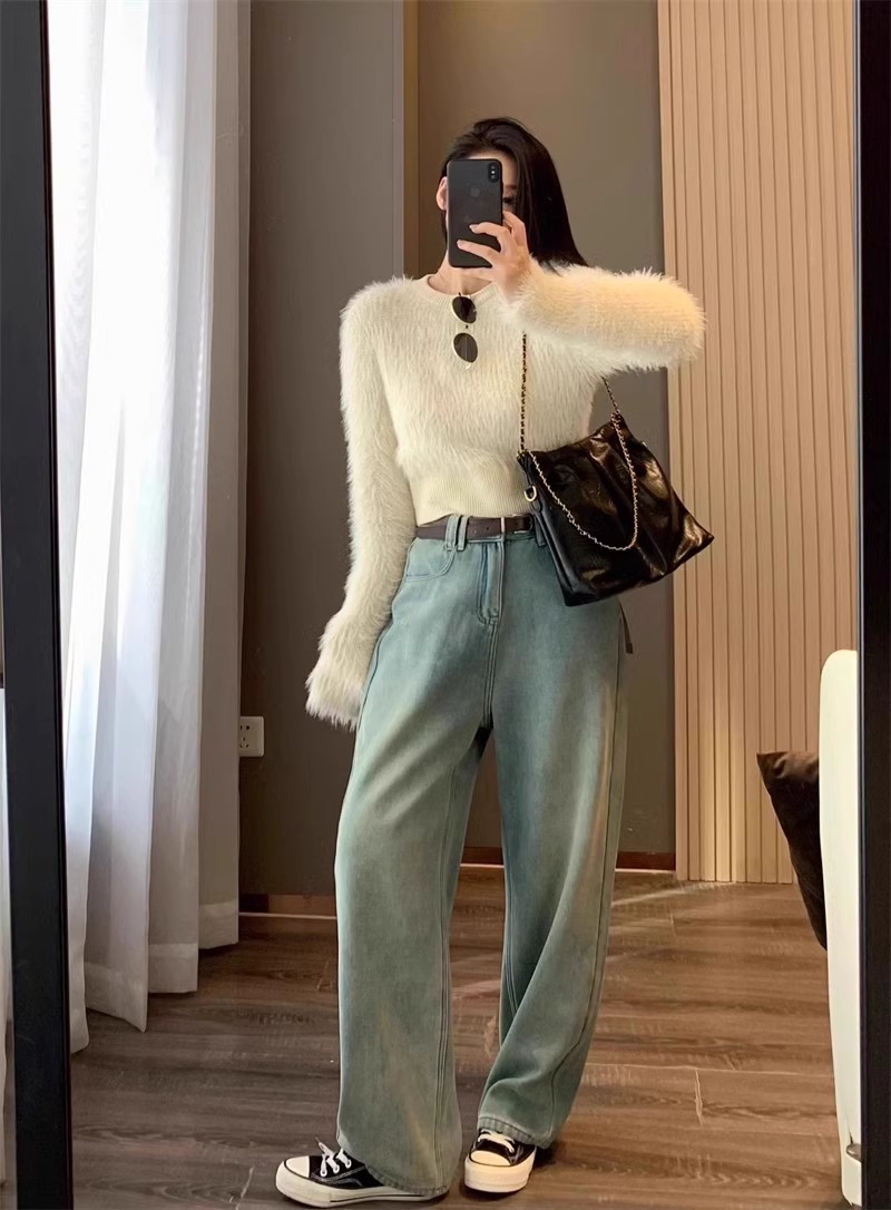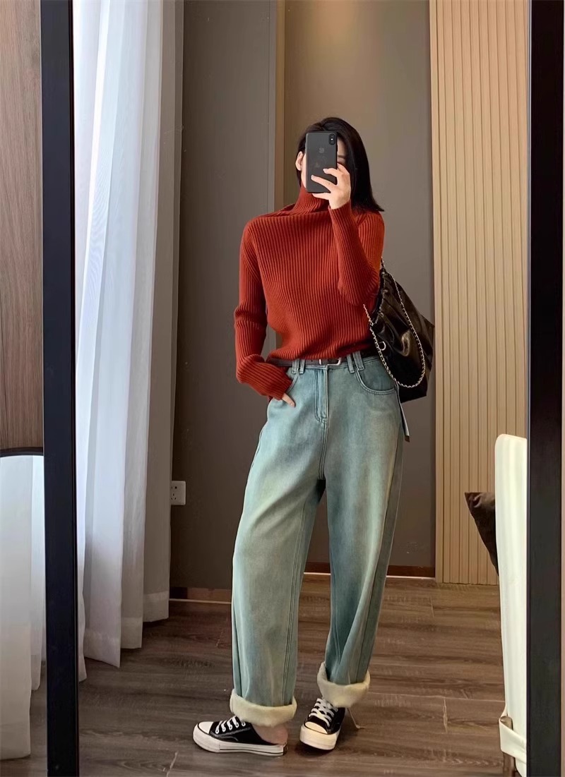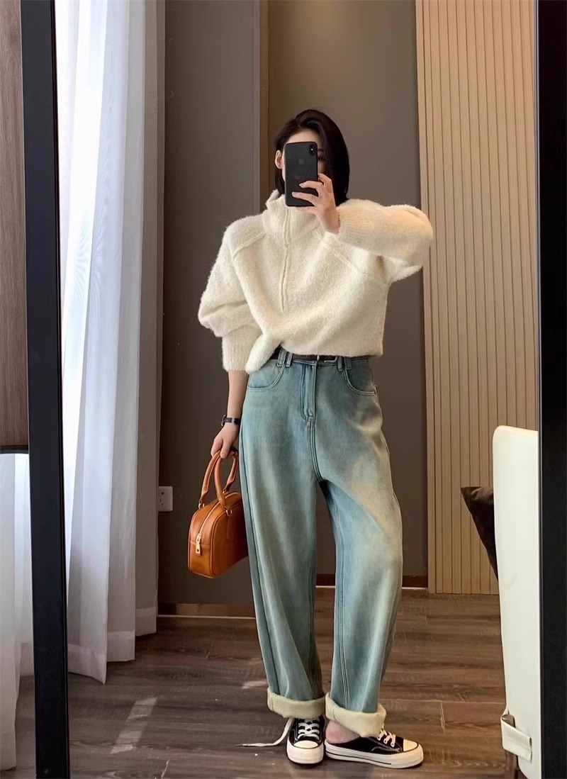 틈새 기모 따뜻한 하렘 청바지 여성의 가을과 겨울 느슨한 슬리밍 스트레이트 아빠 바지 올해 인기스토어 가기