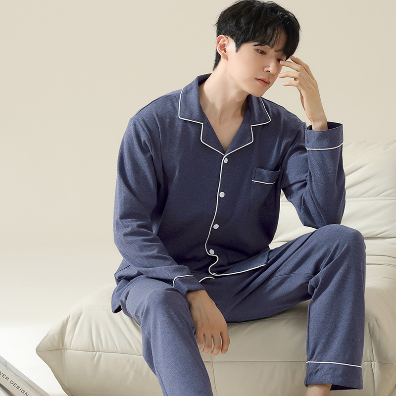순수 코튼 잠옷 남성 긴팔 2024 봄 여름 새로운 대형 단순 신혼 젊은 남성 홈웨어 슈트 세대스토어 가기
