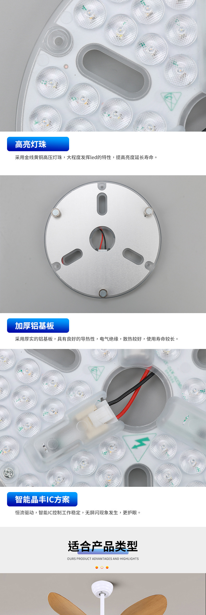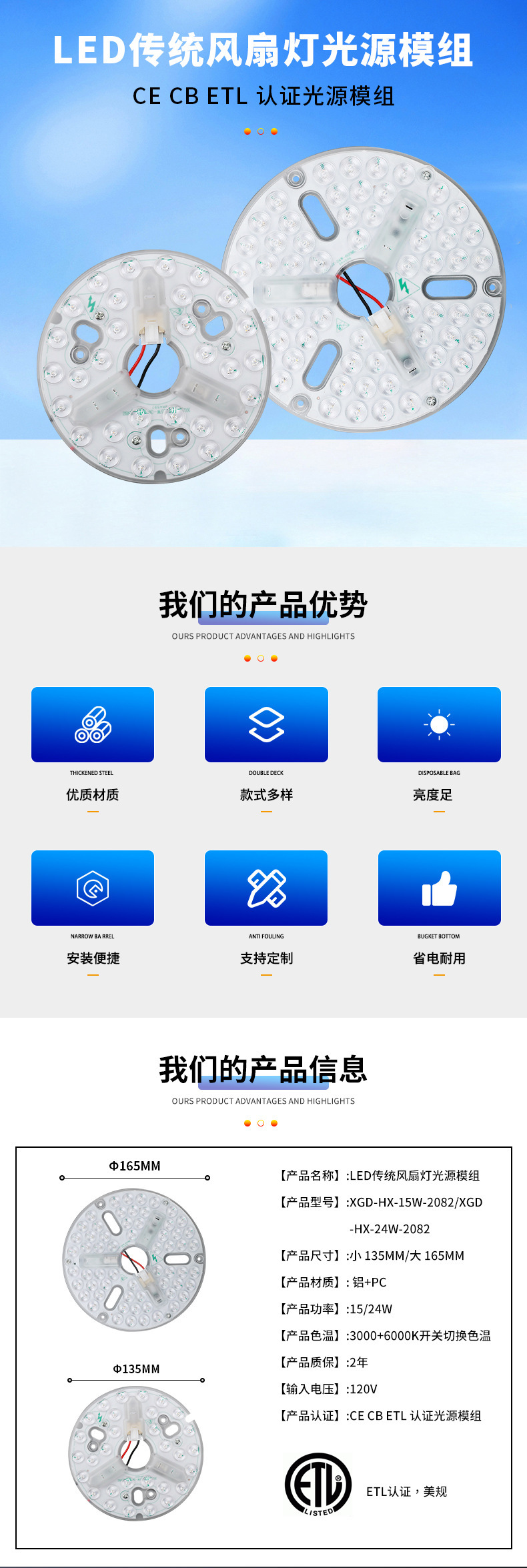 Xingxin 공장 직접 공급 LED 천장 팬 조명 전통적인 스트레이트 리프 팬 팬 광원 램프 플레이트 국경 120V 전압 ETL