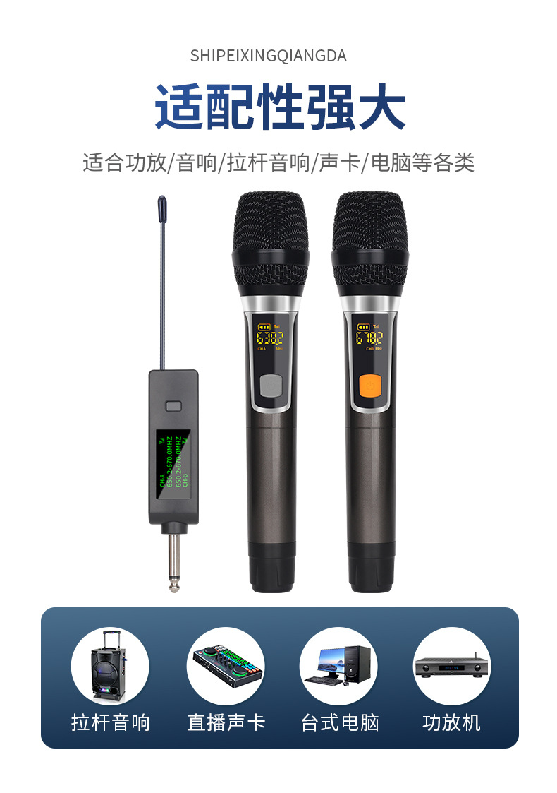 유니버설 무선 마이크 1 대 2 U 세그먼트 FM 핸드 헬드 컨퍼런스 무대 가족 KTV 노래 금속 마이크