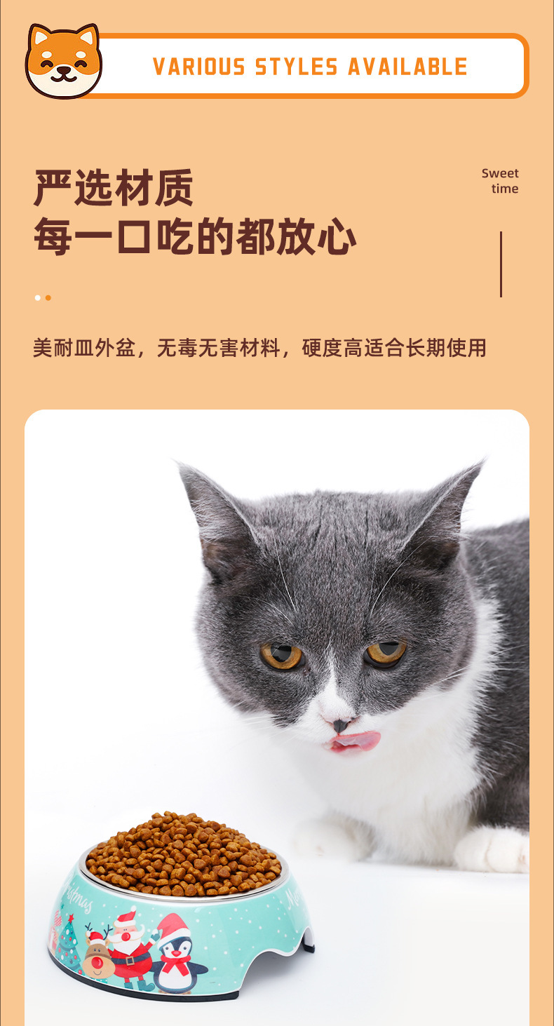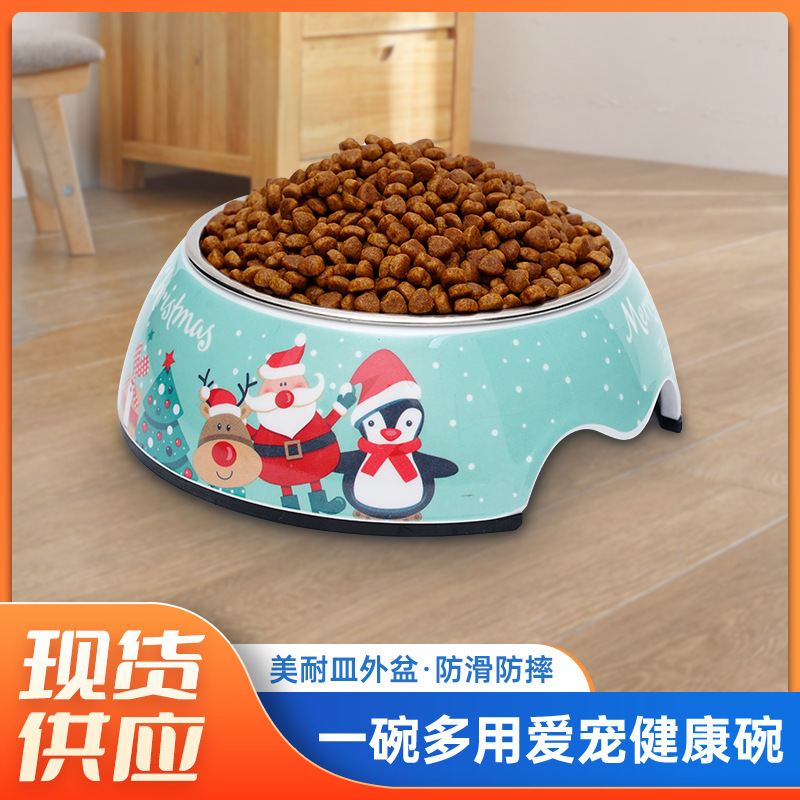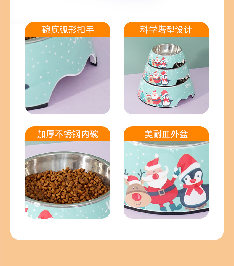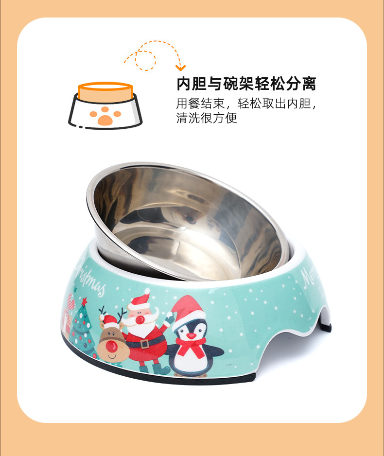 애완 동물 그릇 크리스마스 시리즈 만화 스테인레스 스틸 고양이 개 2 대 1 개 그릇 안티 노크 마시는 물 미끄럼 방지 음식 그릇
