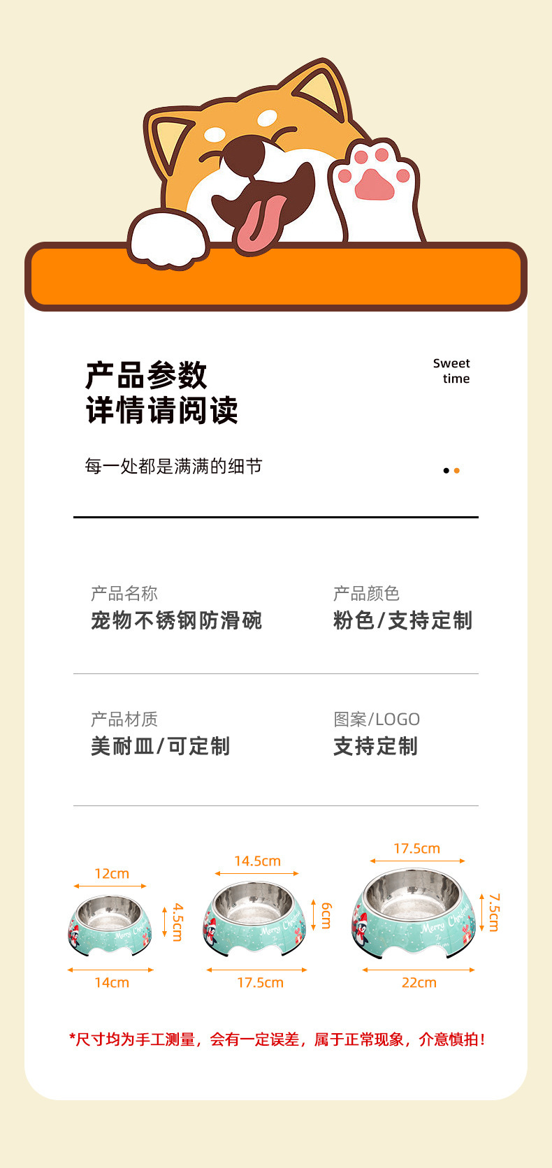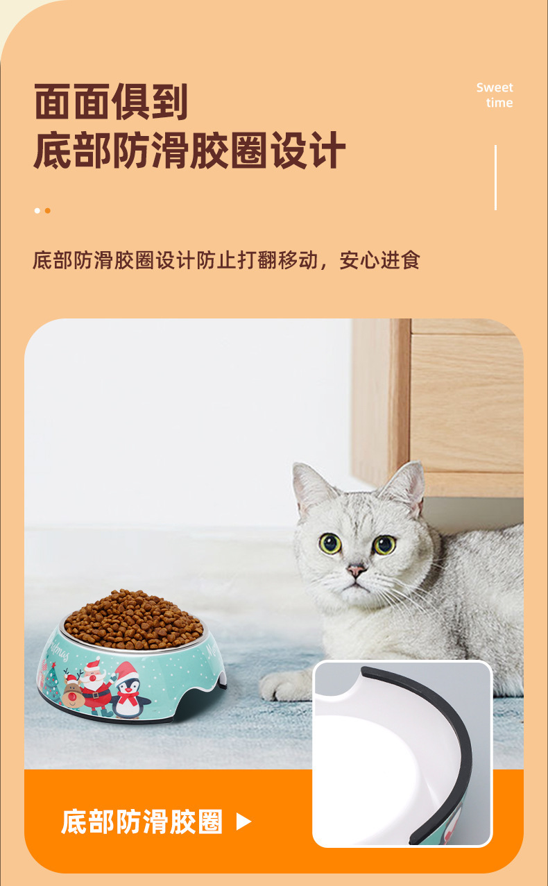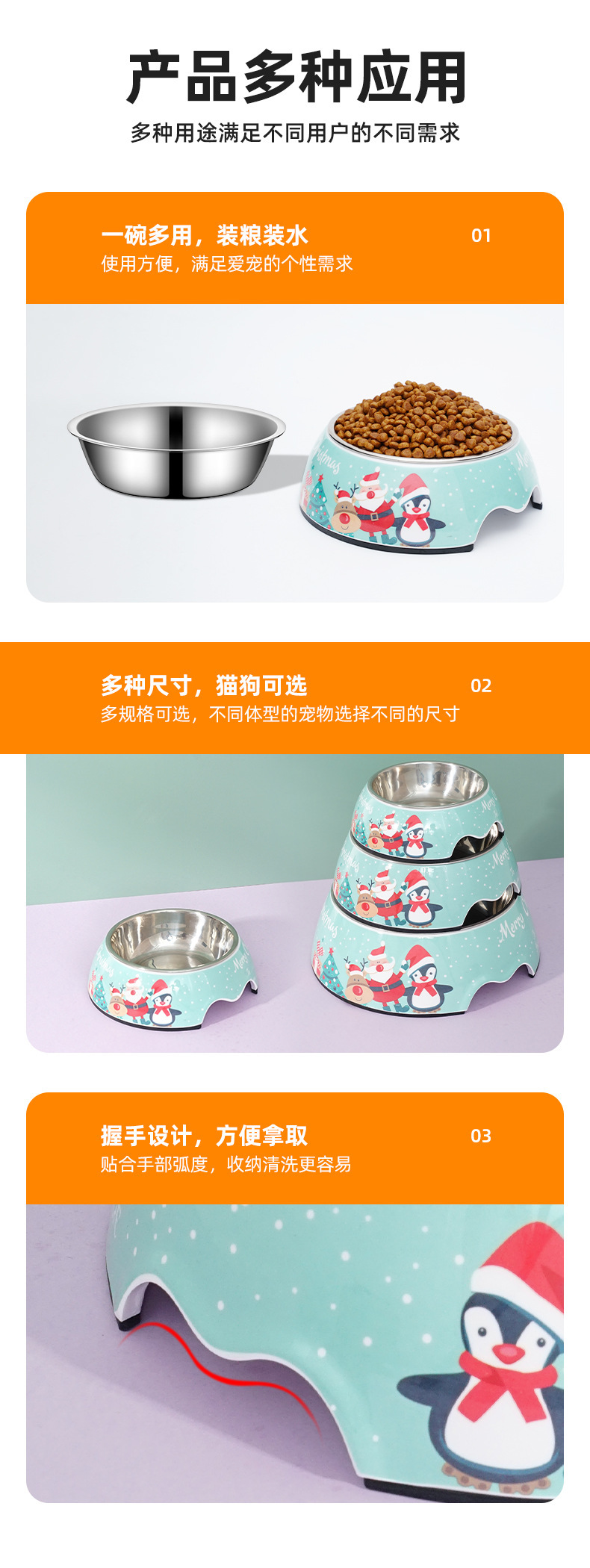 애완 동물 그릇 크리스마스 시리즈 만화 스테인레스 스틸 고양이 개 2 대 1 개 그릇 안티 노크 마시는 물 미끄럼 방지 음식 그릇