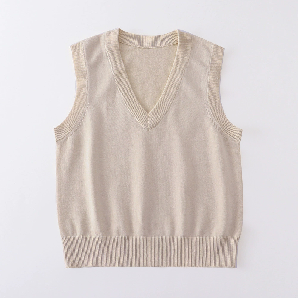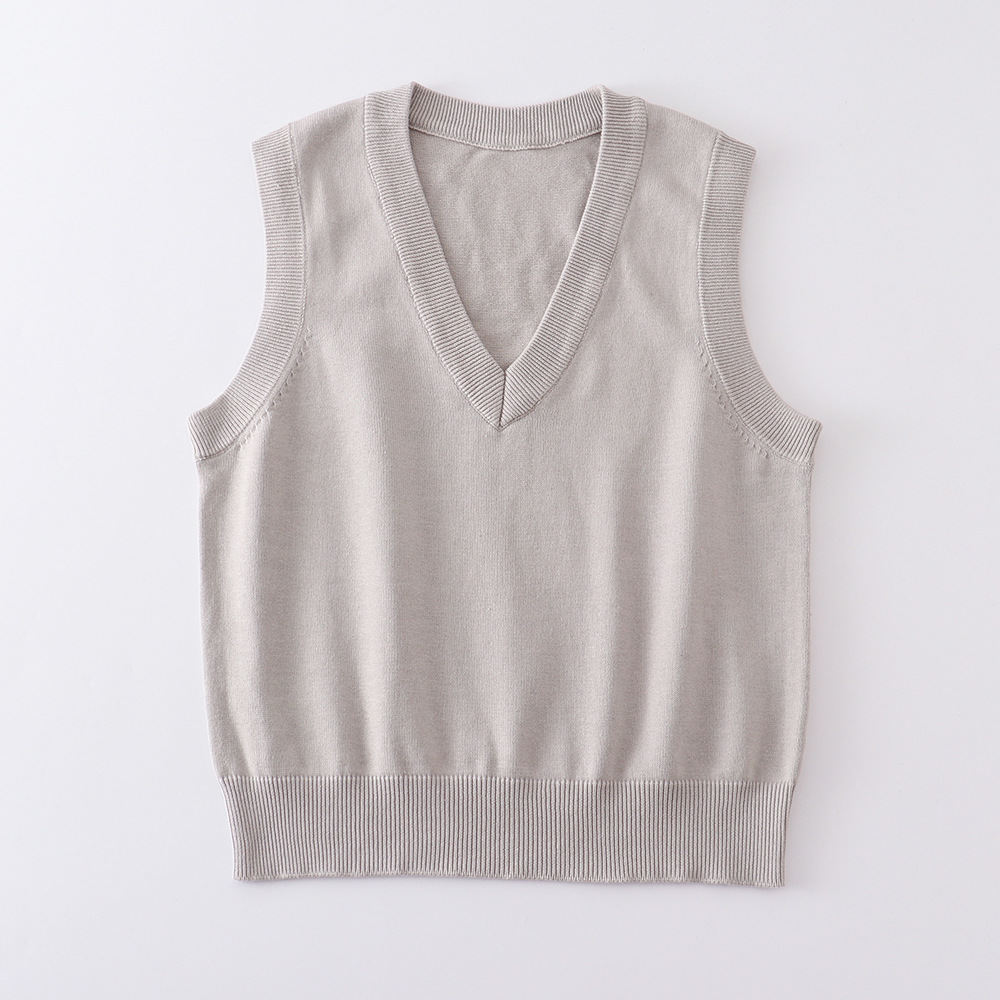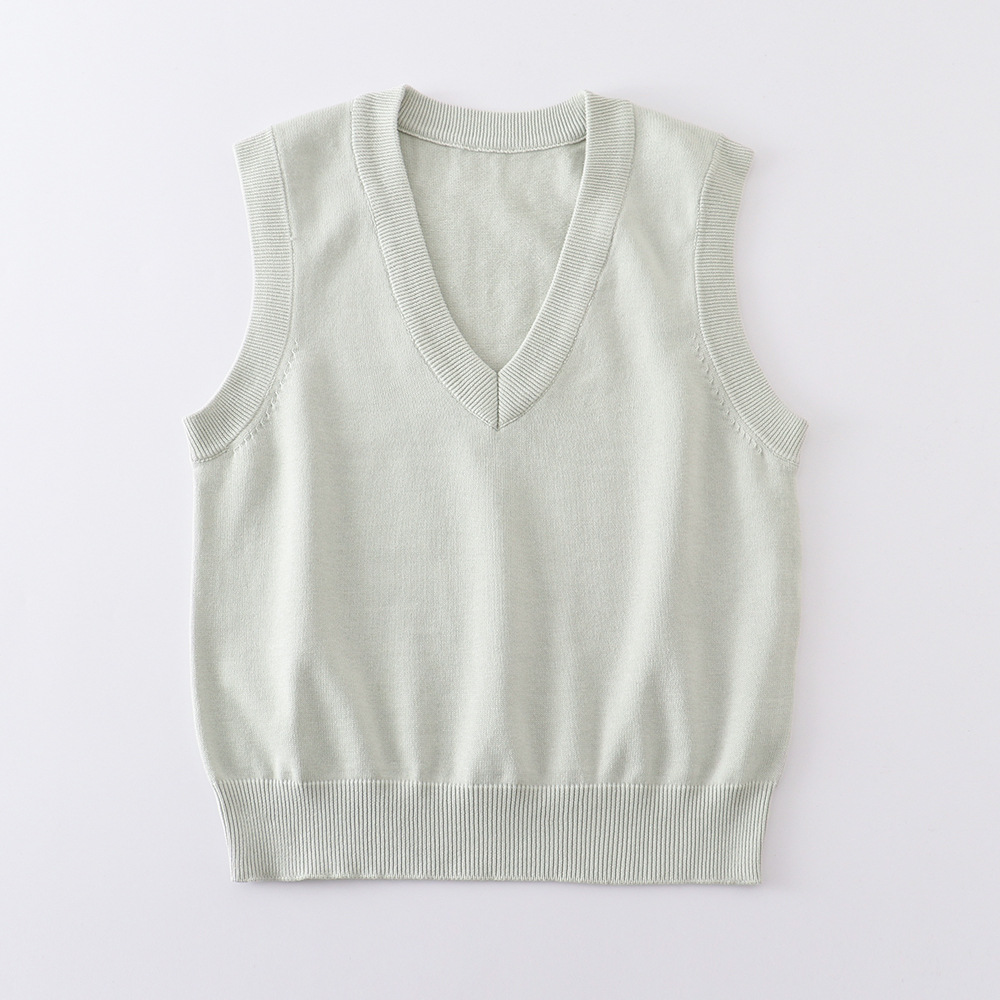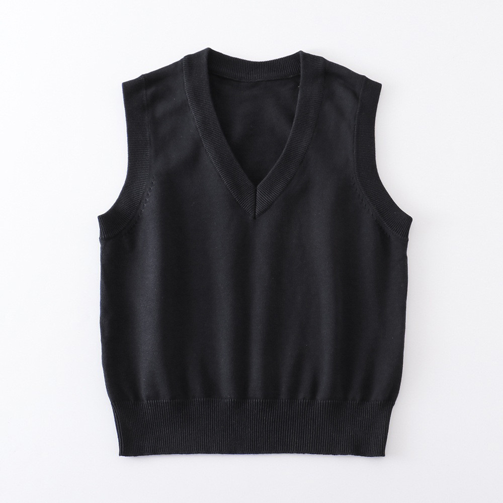기본 V 넥 풀오버 JK 스웨터 유니폼 조끼 민소매 얇은 단색 여성 학생 스웨터 재고