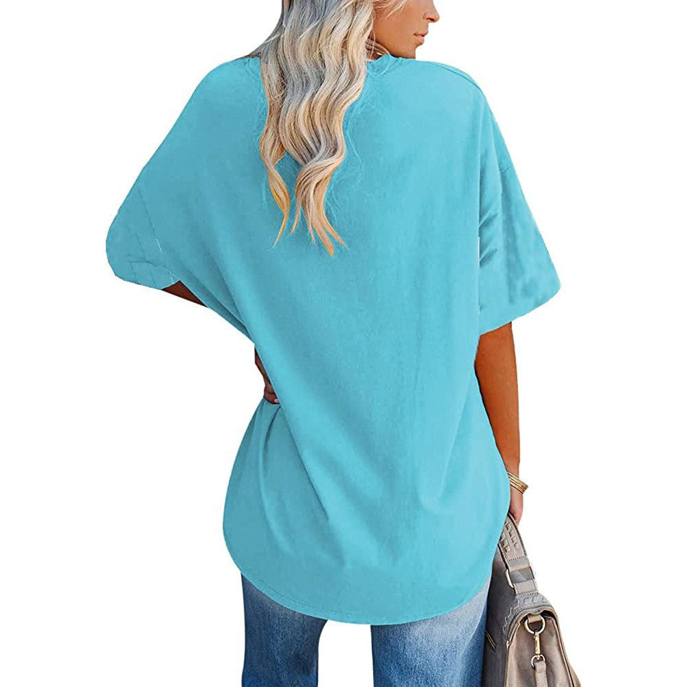 봄과 여름 2024 TUME 아마존 국경 유럽과 미국의 새로운 여성 승무원 어깨 캐주얼 반팔 티셔츠 최고 여성