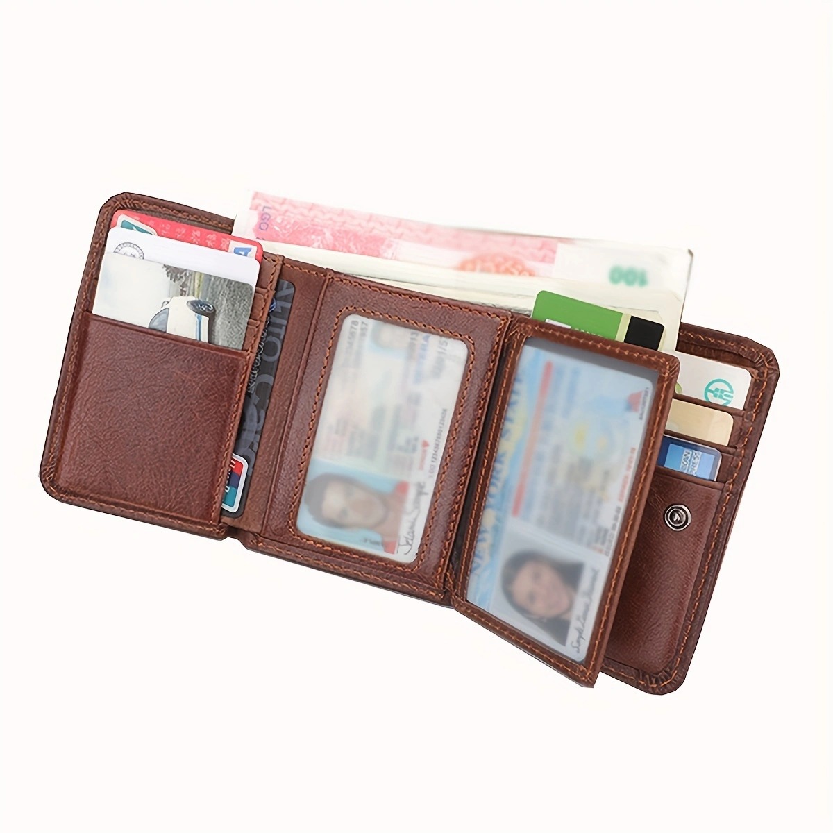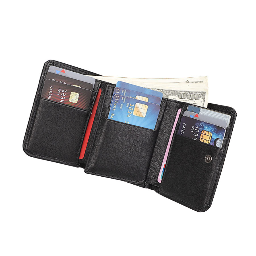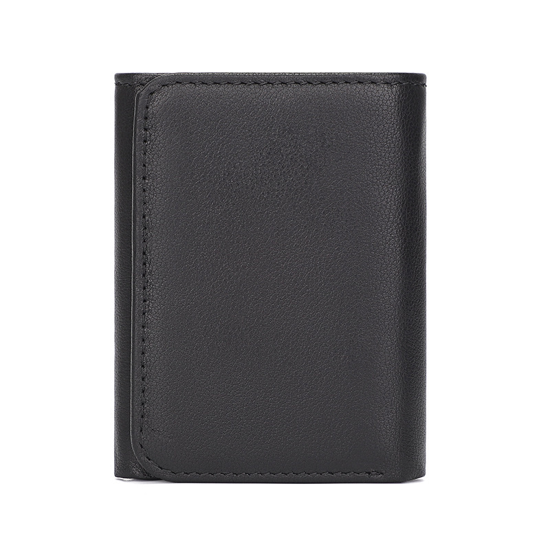 첫 번째 레이어 소 가죽 남성 가죽 지갑 신용 카드 홀더 3 배 유럽과 미국의 RFID 도난 방지 브러시 짧은 지갑 뷰티 클립